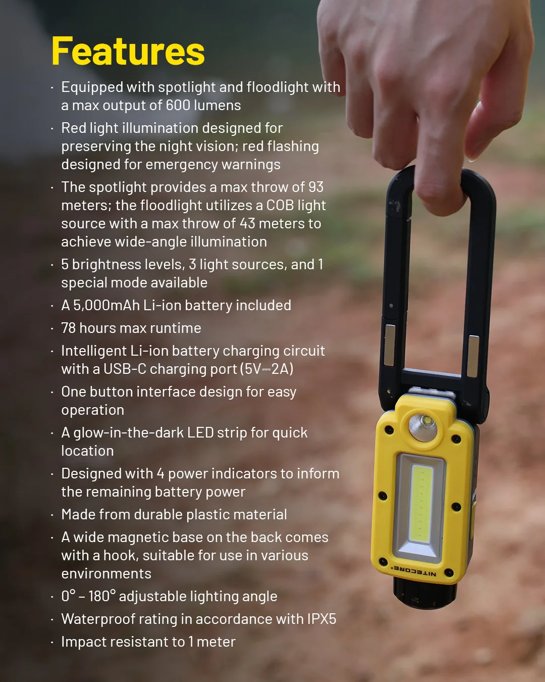 Фонарь NITECORE NWL20, многофункциональный, с тройной выходной работой