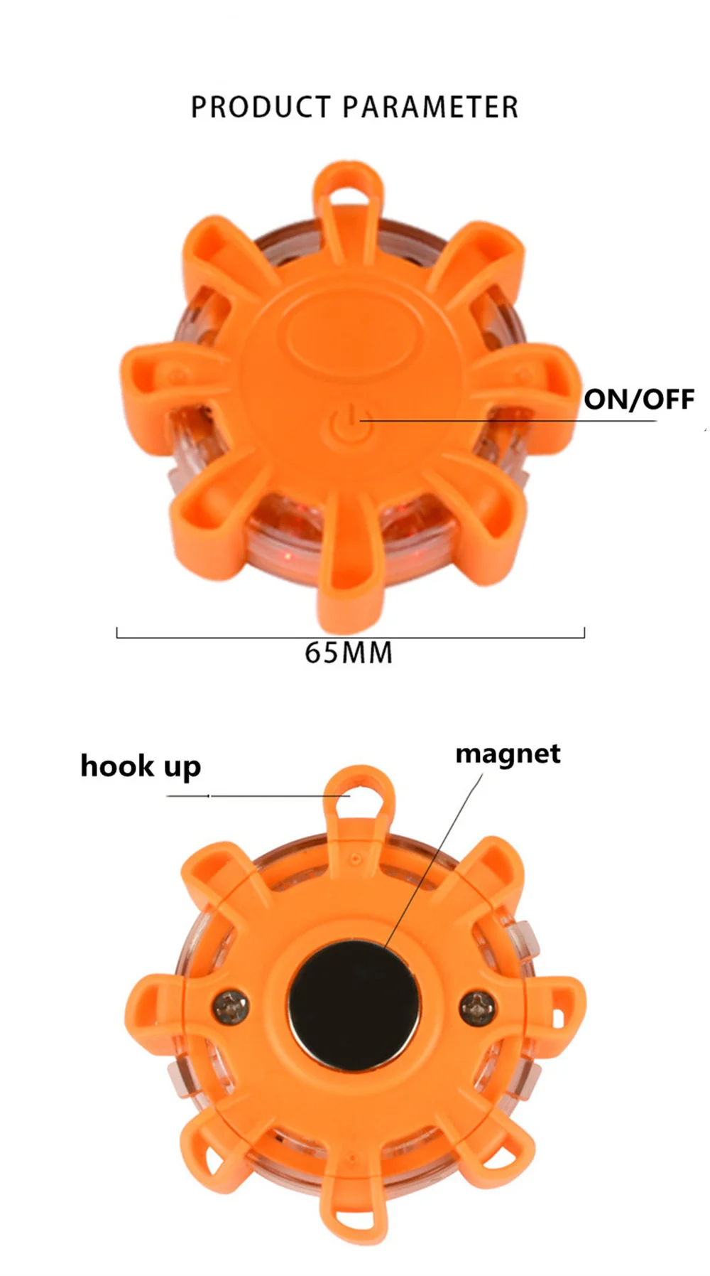 • Функция магнитного полицейского дорожного света :Магнитная функция позволяет легко прикрепить к автомобилю, действуя как полицейский дорожный фонарь для предупреждения о встречном движении.