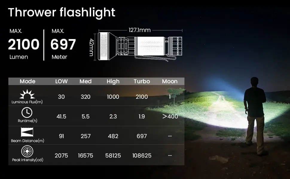 Корпус фонарика: алюминиевый сплав класса 6061 для аэрокосмической промышленности, ЧПУ, изготовленный для твердого анодированного в соответствии со спецификацией военного класса типа III, антиабразивное покрытие для получения прочного корпуса, геометрия анти -- столкновения и лучший теплообмен. Линза из закаленного минерального стекла Водонепроницаемость I. А. Ж. IPX-8 (до 2 метров под водой, не для дайвинга) Память режима: запоминает Последний уровень яркости, используемый в общих режимах (Low/Med/High) защита от обратной полярности от неправильной установки батареи Предупреждение о низком напряжении: когда напряжение батареи слишком низкое, светодиодный индикатор в боковом переключателе начнет быстро мигать. Пожалуйста, зарядите аккумулятор. Защита от низкого напряжения: фонарик автоматически отключается, когда напряжение ниже 3,0 В. Он также автоматически отключается, если напряжение становится слишком низким. Пожалуйста, зарядите аккумулятор. Технология усовершенствованного регулирования температуры (ATR): при повышении температуры (выше 55 ℃) IF22/IF22A запрограммирован на автоматическое понижение и повышение яркости для предотвращения перегрева.