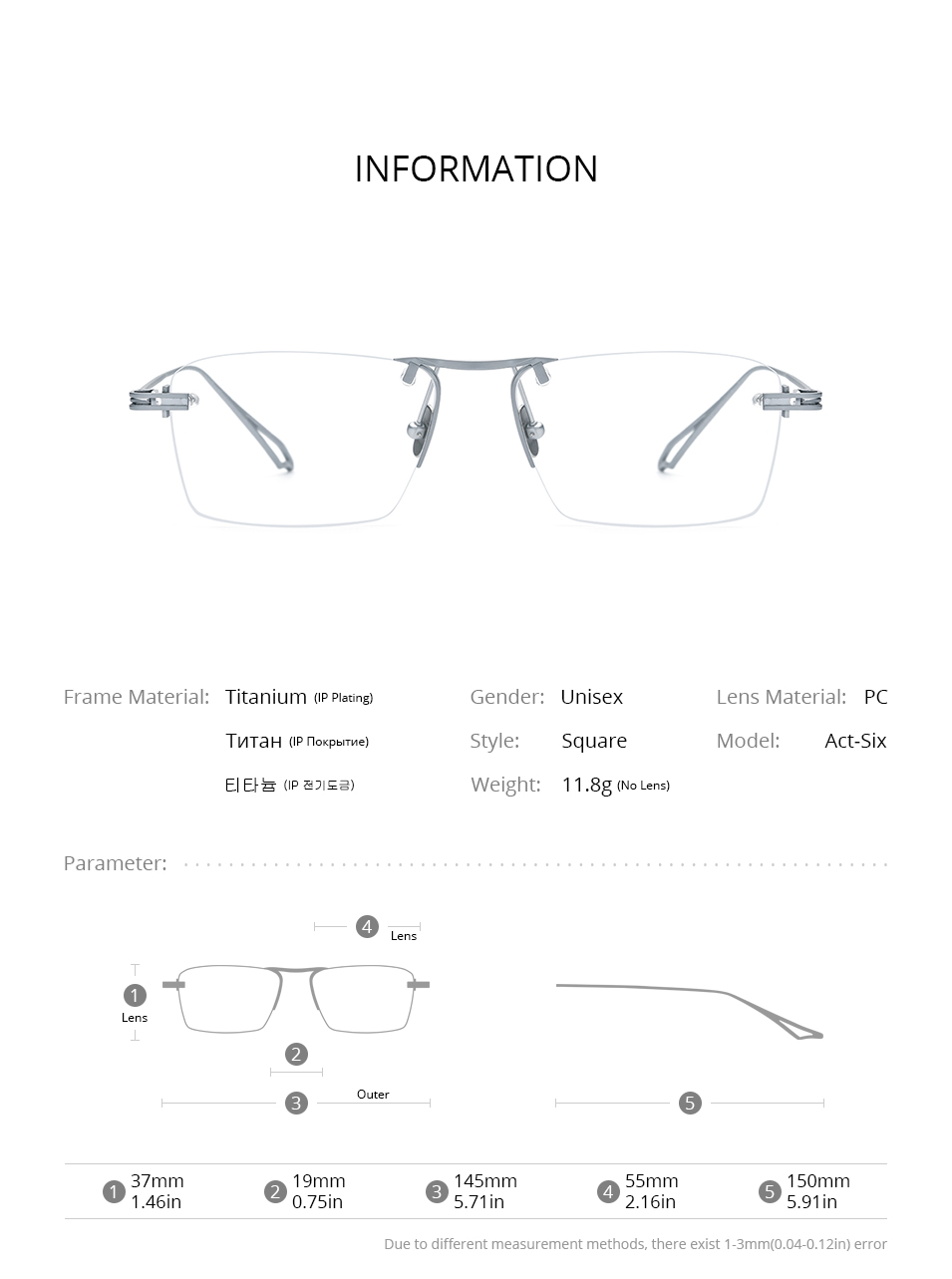 Model Number Act-Six High Quality Korean Japaness Style Myopia Eye Glasses