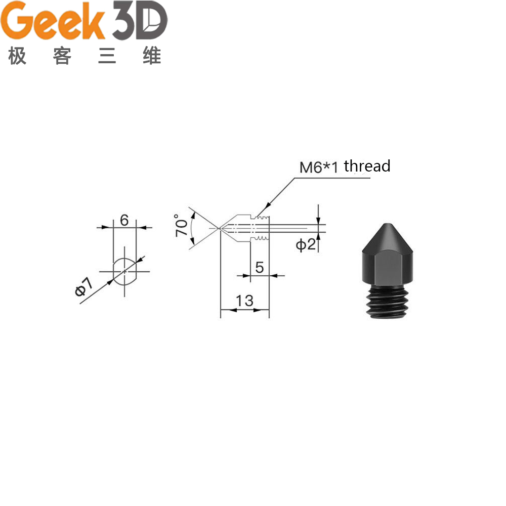 Формочка MK7 MK8, сверхтвердая стальная форма, коррозионно-стойкий экструдер с резьбой 1,75 мм, 0,2 мм, 0,4 мм для 3D принтера Ender 3
