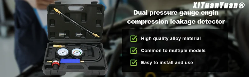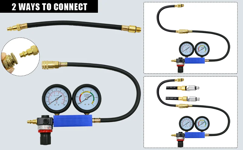 TU-21 Тестер утечки цилиндра Детектор утечки сжатия Двойной манометр Обнаружение утечки бензинового двигателя Инструмент для испытания на сжатие