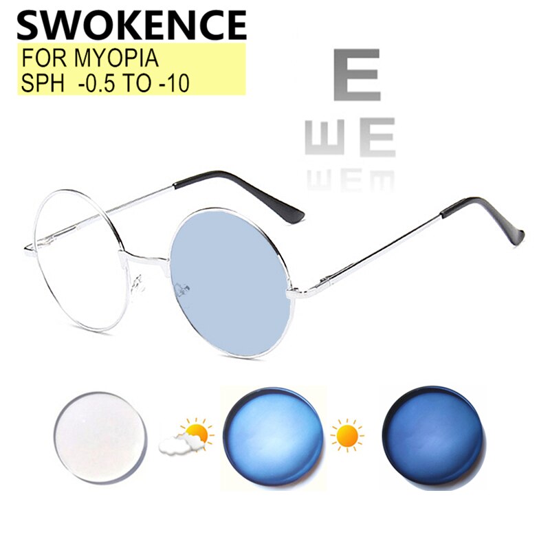 Фотохромные с защитой от синего излучения Рецептурные очки для близоруких-0,5 до-10 для мужчин и женщин, сплав, круглая оправа, близорукость, астигматизм F178