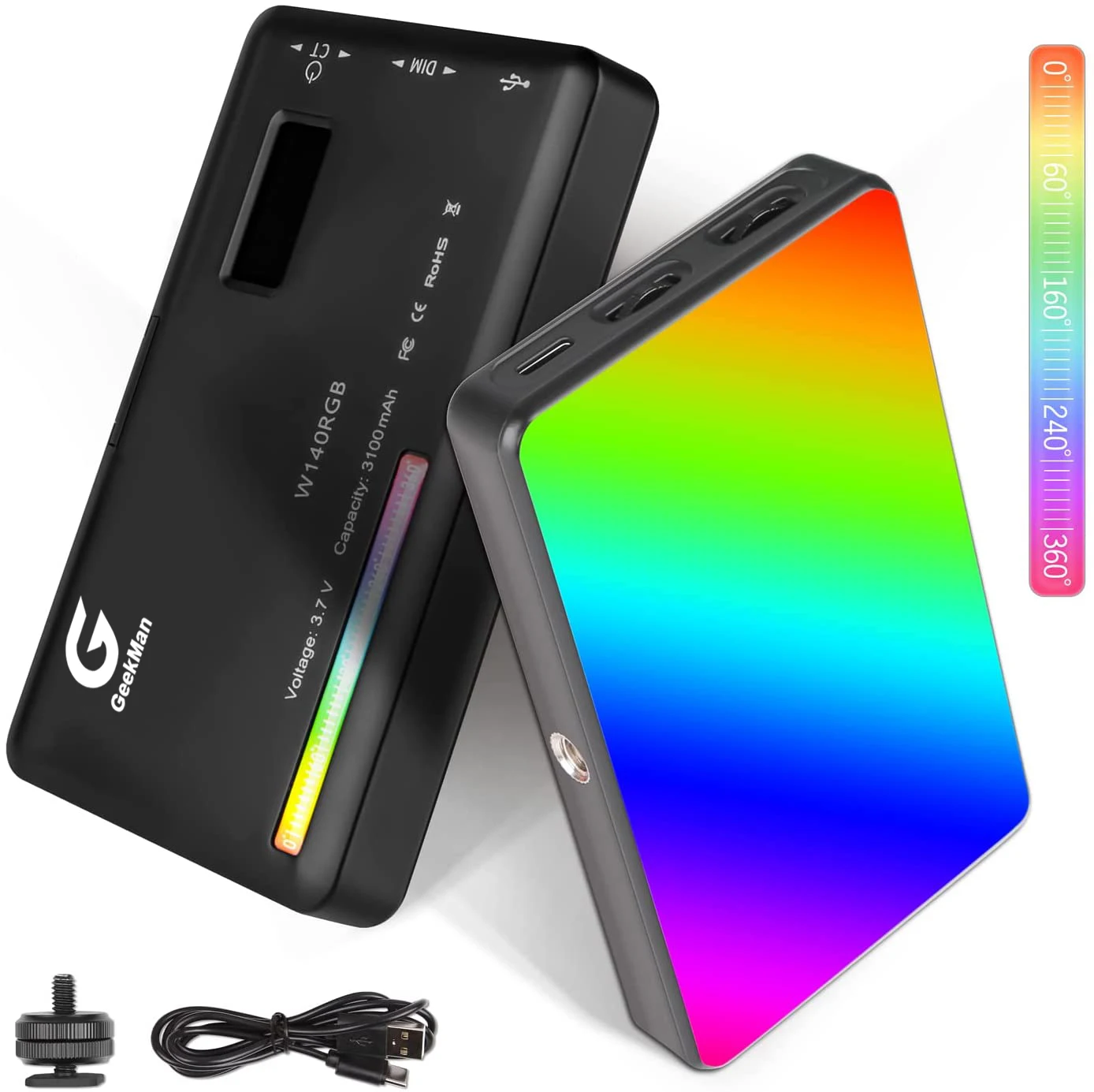 Фотокамера Geekman W140 светодиодный RGB с разрешением 0-360 °, полноцветная, 2500 до 3100 К8 Вт, мАч