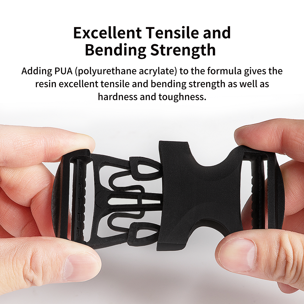 Добавление PUA (полиуретанового акрилата) в формулу дает смоле отличную прочность на растяжение и изгиб, а также твердость и ударную вязкость.