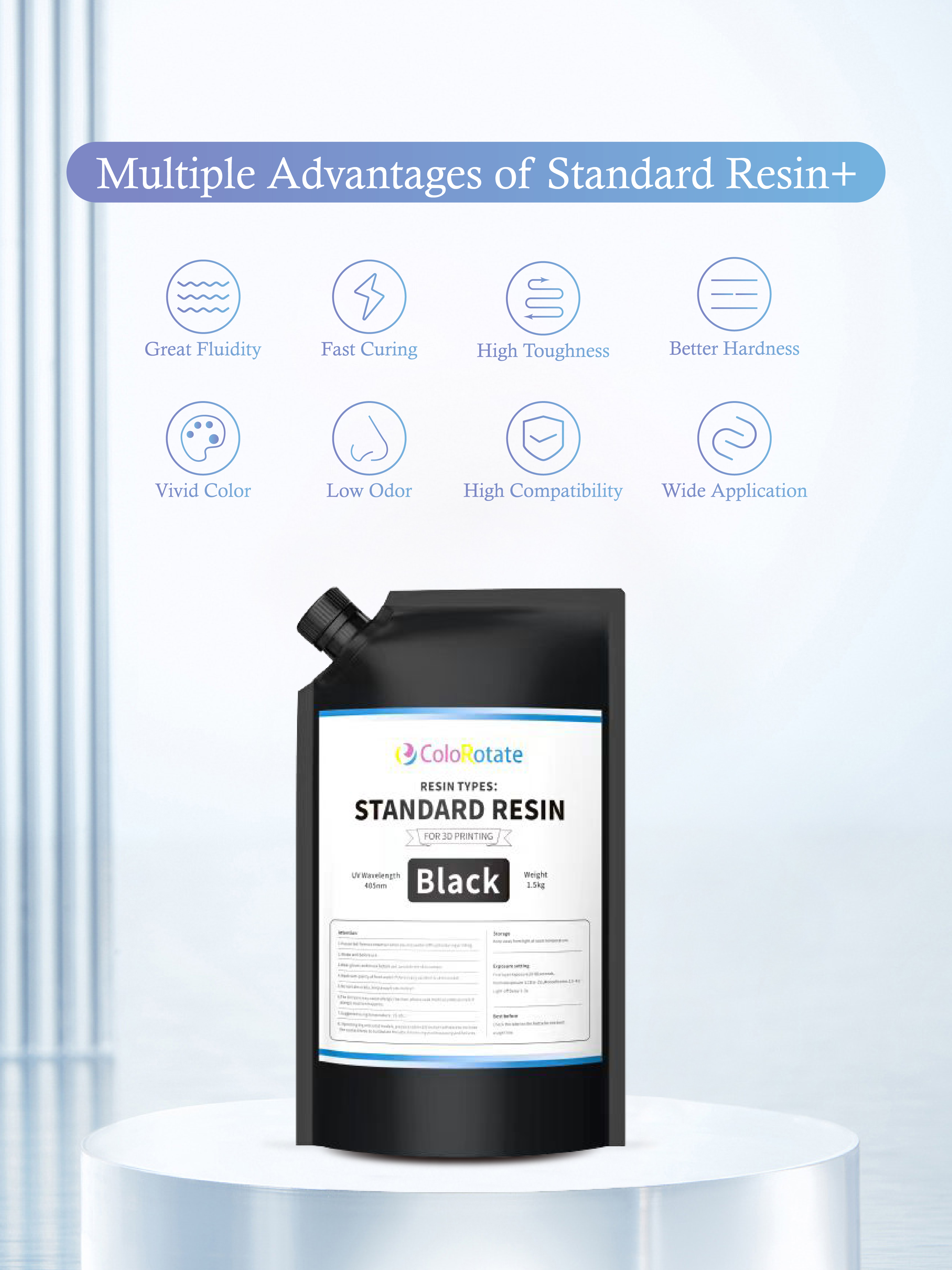 Основываясь на больших показателях популярной стандартной уф-смолы, Standard Resin + обновляет новую формулу. Благодаря этому повышается точность и прочность печати, удачная адгезия и высокая степень детализации.
