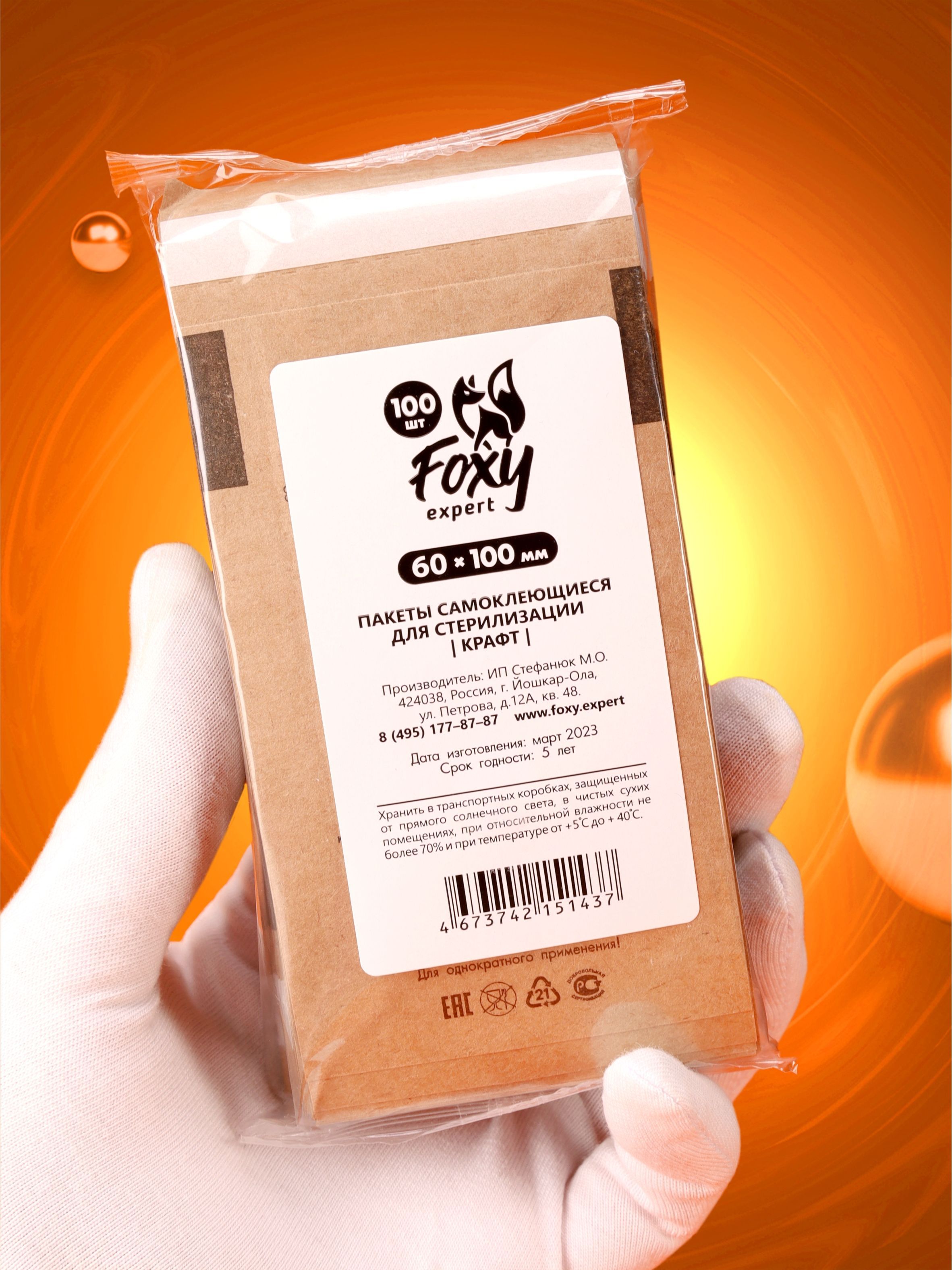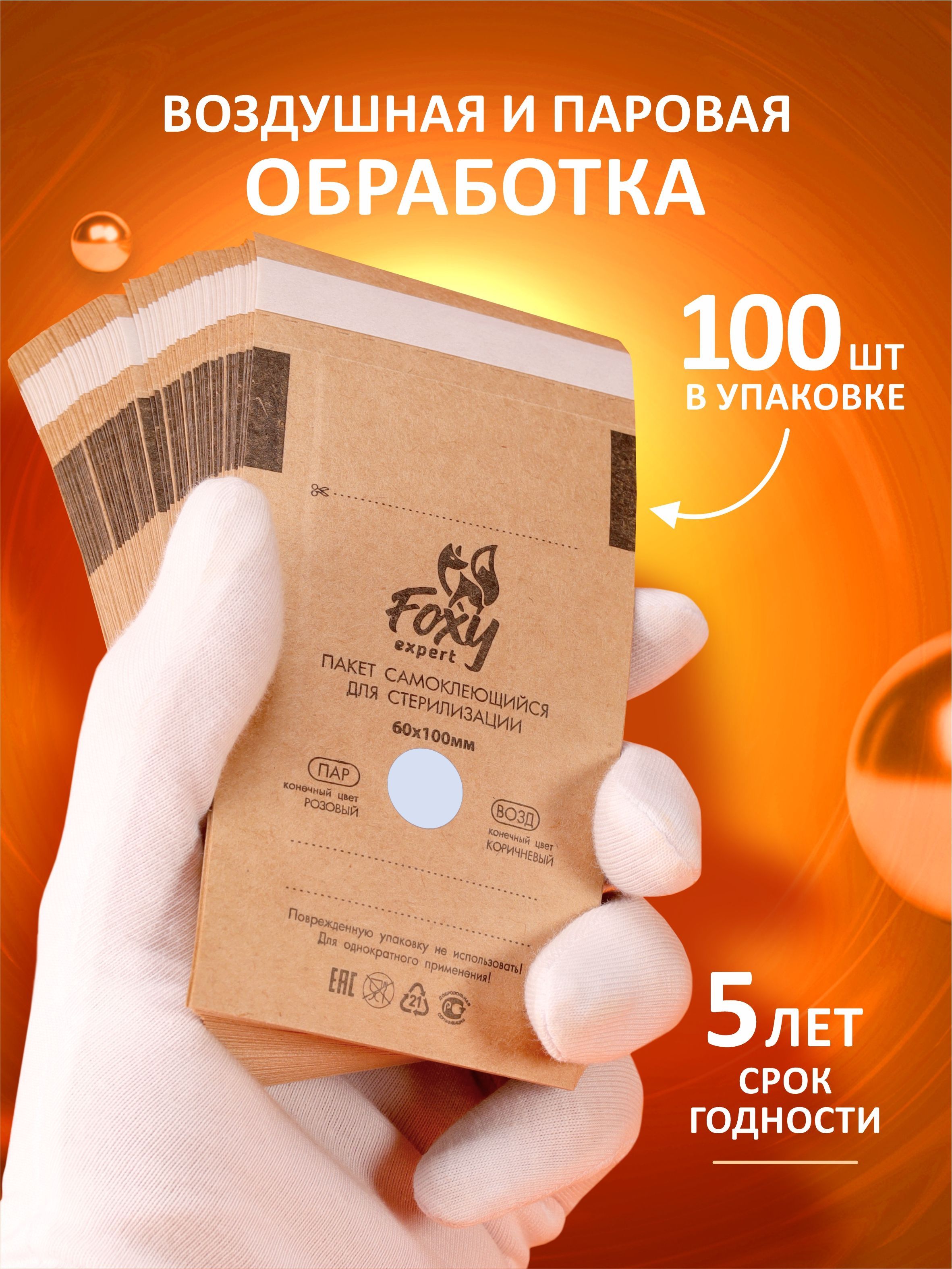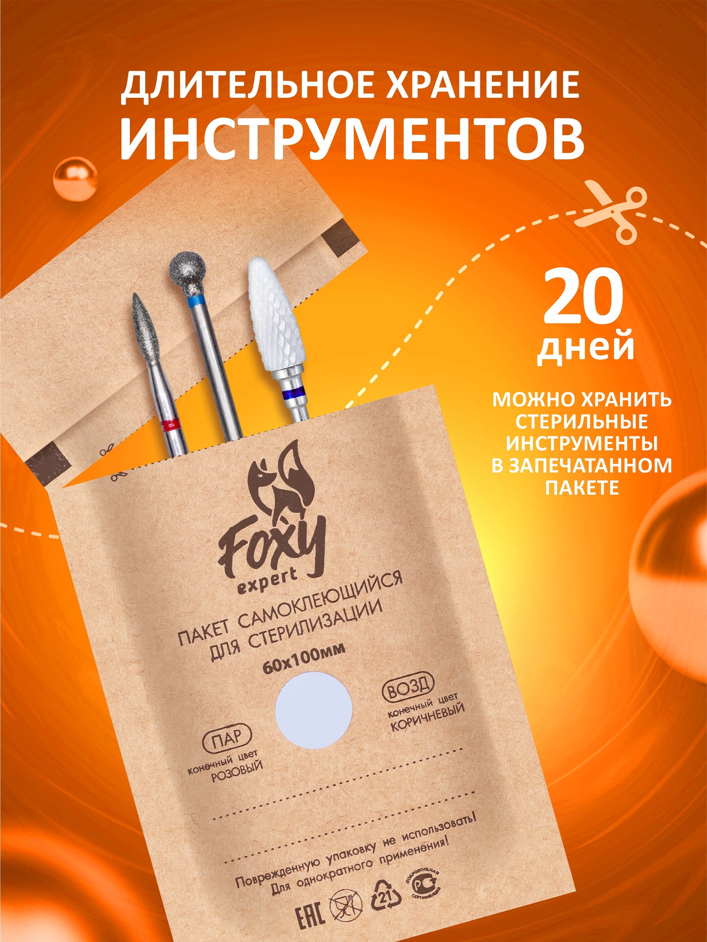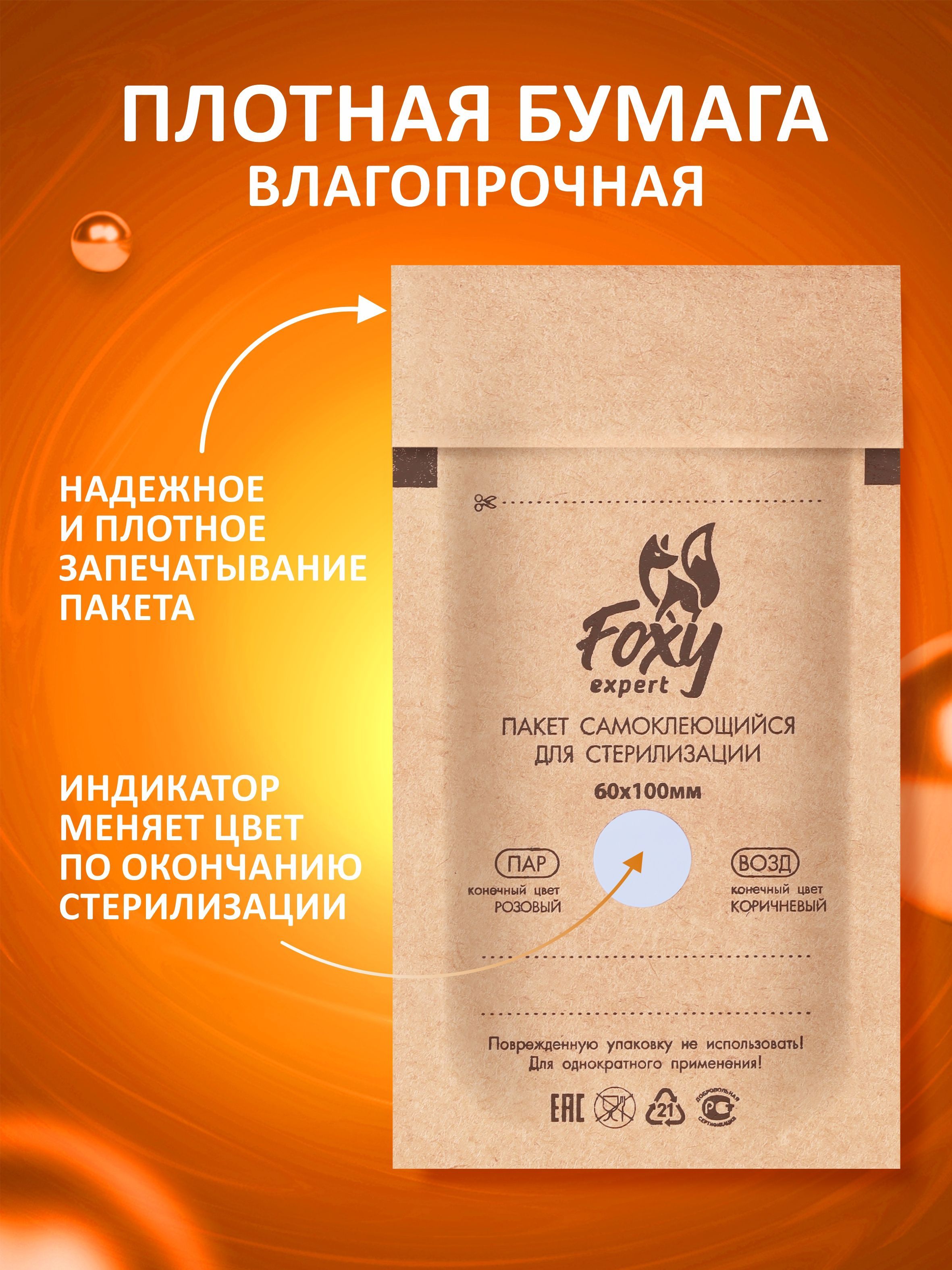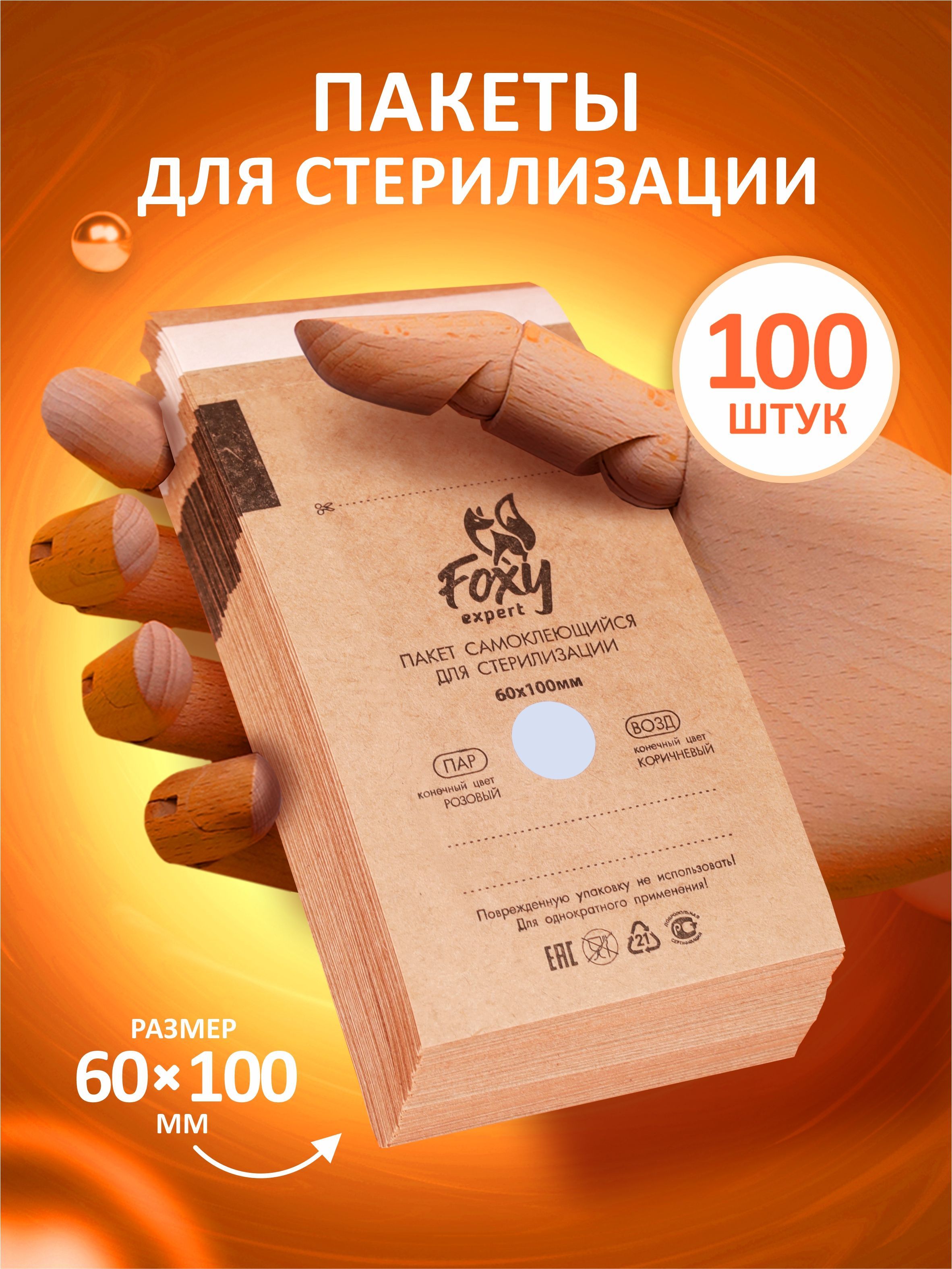 FOXY EXPERT ::: 100 шт. Крафт пакеты для стерилизации инструментов, 60х100 мм /Фокси Эксперт/