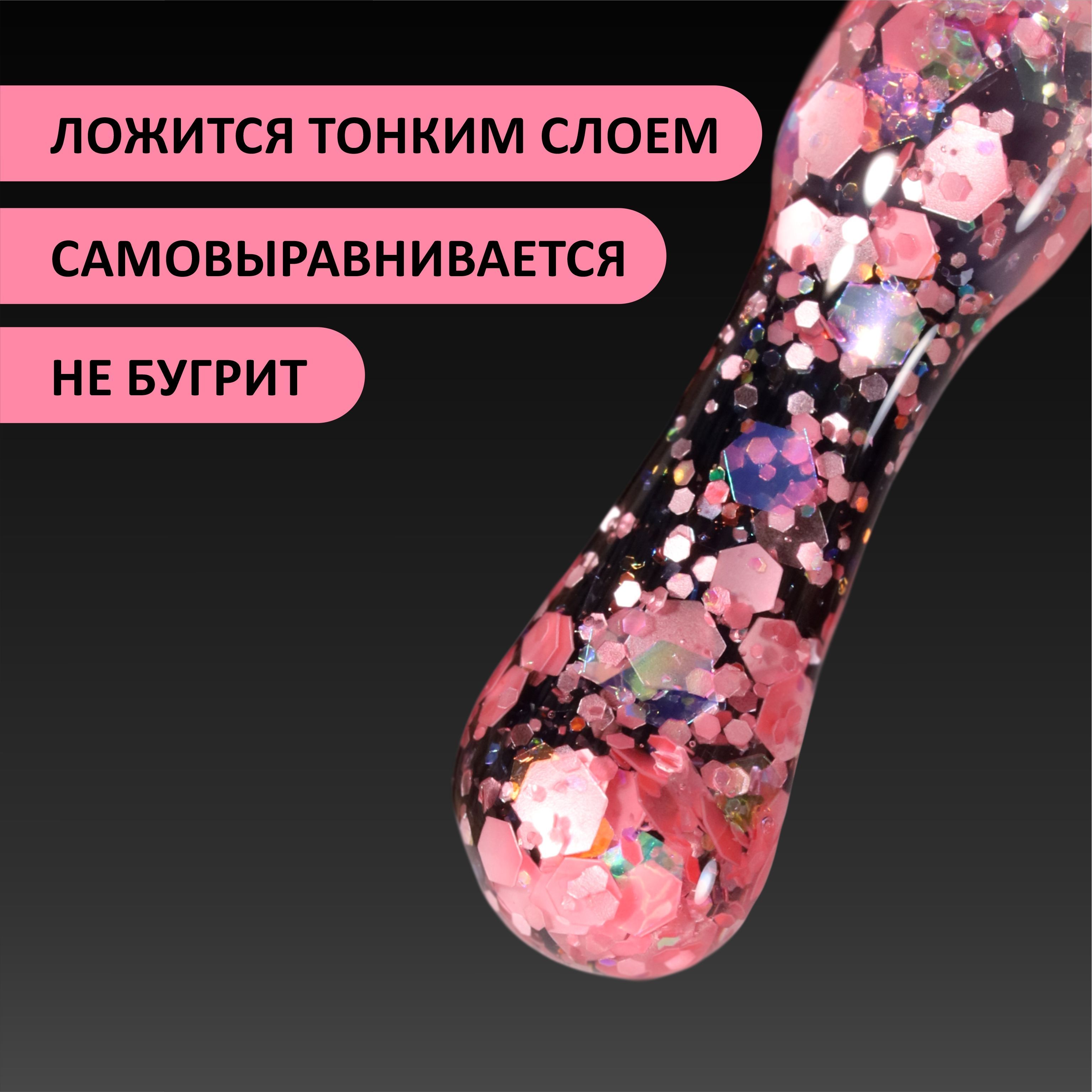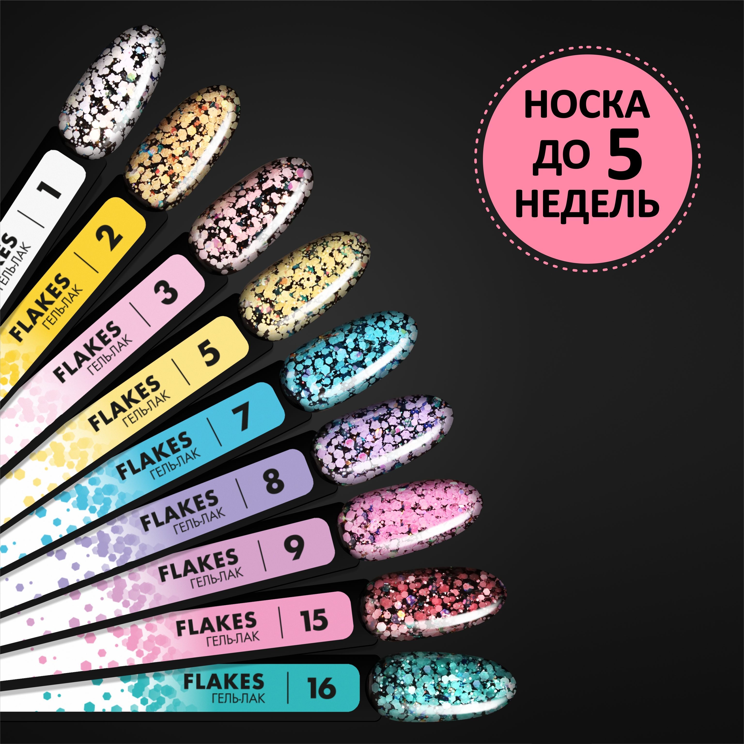 Описание: Коллекция гель-лаков FLAKES от FOXY EXPERT с блестками и хлопьями для дизайна маникюра и педикюра. Гель лак имеет прозрачную витражную основу, рекомендуется нанесение на цветную подложку или камуфлирующую базу. В составе гель-лака цветные хлопья мелкие блестки и шиммер. Имеет среднюю консистенцию, удобен в нанесении и не бугрит. Рекомендуется покрытие в 1 слой, при необходимости в 2 слоя. Создавайте свой яркий праздничный или повседневный дизайн ногтей с гель-лаками FLAKES. СПОСОБ ПРИМЕНЕНИЯ 1. Подготовить ногтевую пластину; 2. Сделать выравнивание базовым покрытием (Каучуковая база для гель-лака (Rubber base gel) или Каучуковая база для гель-лака NANO (Rubber base gel NANO) , просушить в лампе; 3. Покрыть гель-лаком, просушить в лампе; 4. Поверх нанести топовое покрытие. Рекомендуем использовать лампу мощностью не менее 48 Вт. Время сушки в УФ лампе не менее 2х минут, в LED лампе - 1 минута. Категорически нельзя перед любым покрытием использовать крем для рук, масло или воск для кутикулы. Также крайне не рекомендуется сразу после маникюра мыть посуду и делать влажную уборку без перчаток. Соблюдение этой технологии позволит получить Вам надежный результат, который будет радовать Вас до 5 недель. Добавьте данный товар в "Избранное", а наш магазин в "Любимые"! Тогда Вы сможете своевременно узнать об акциях на данный и другие товары. Не упустите шанс совершить выгодные покупки в нашем магазине!