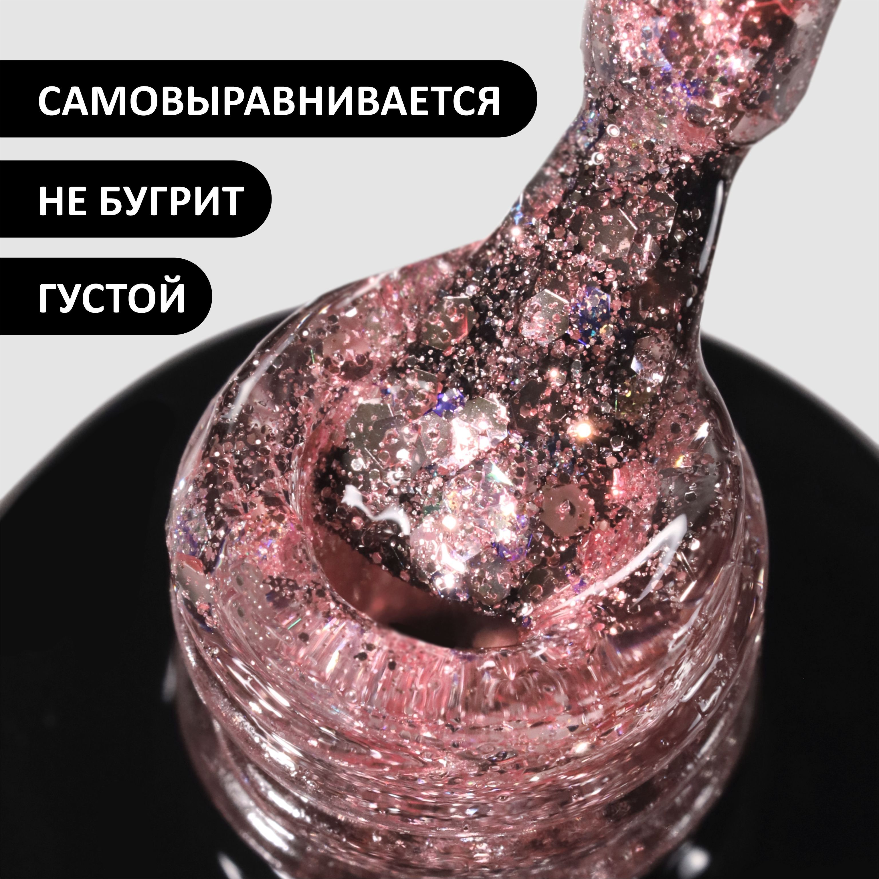 FOXY EXPERT ::: 5 мл. Прозрачный гель лак для дизайна ногтей с блестками, коллекция DISCO #03. Светло-розовый / Фокси Эксперт /