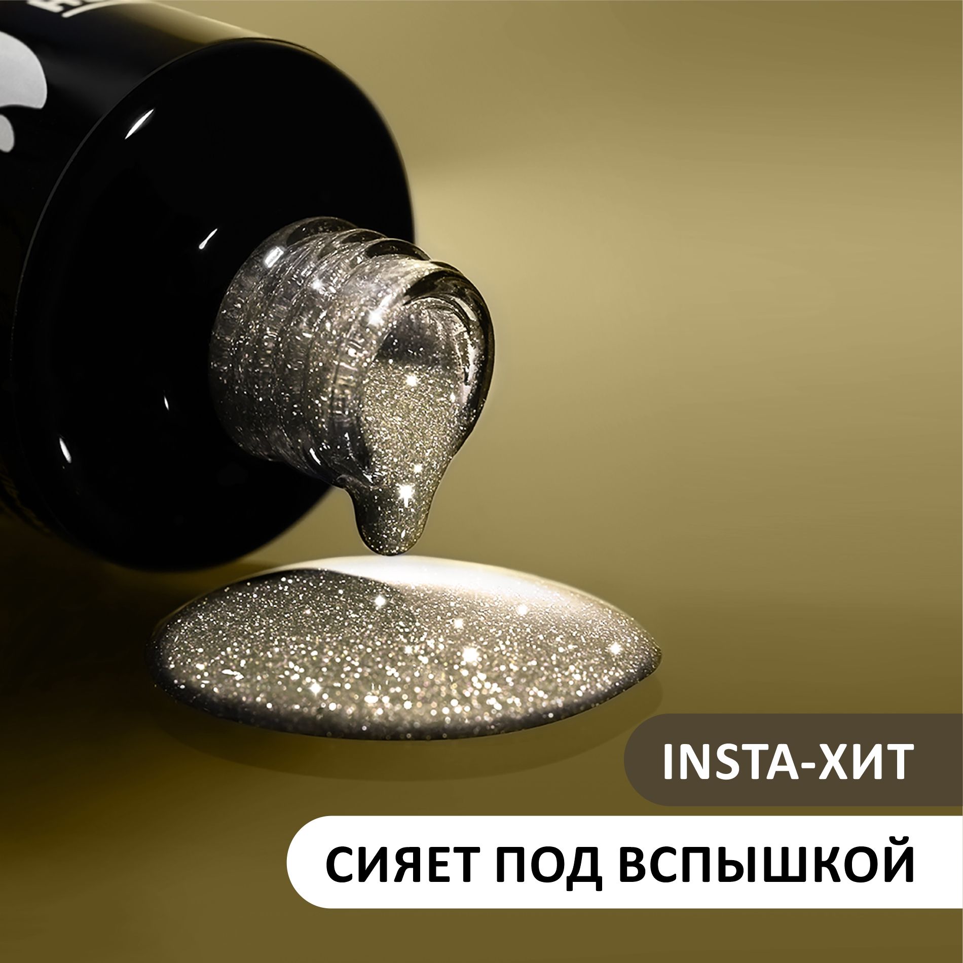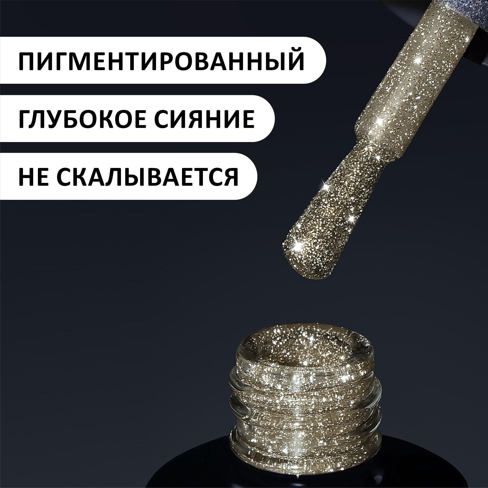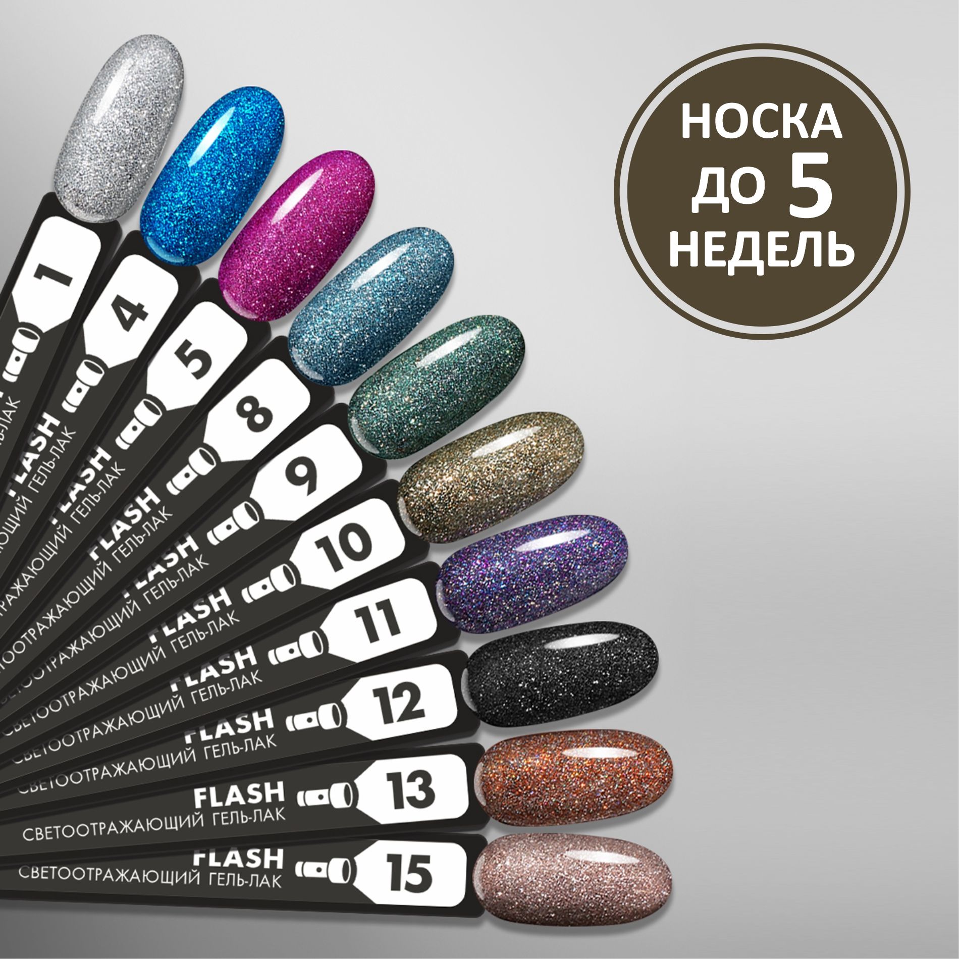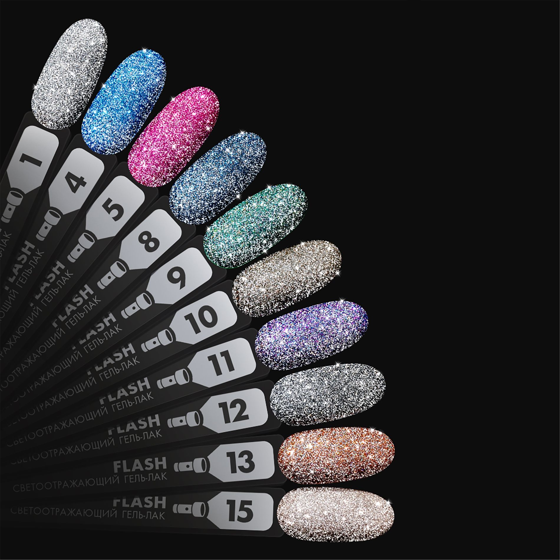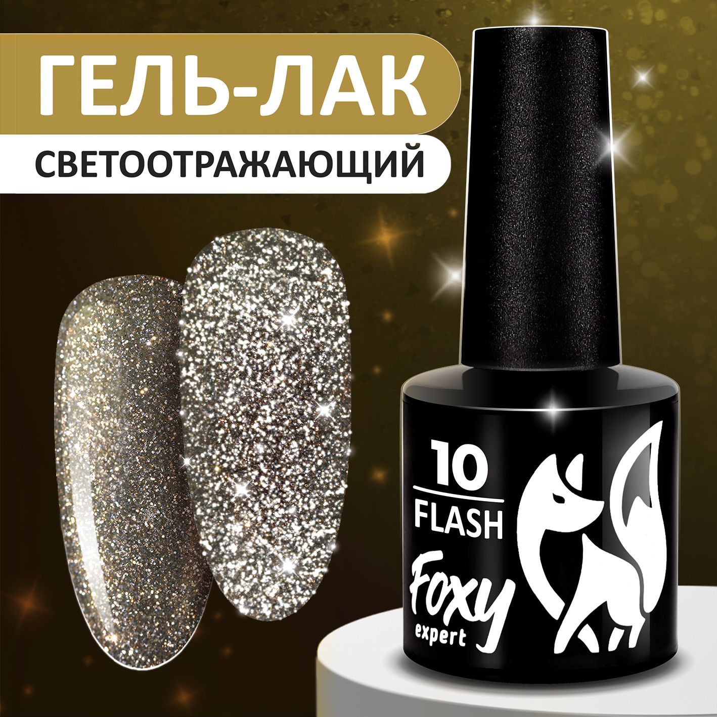 FOXY EXPERT ::: 8 мл. Гель лак для ногтей СВЕТООТРАЖАЮЩИЙ с блестками, Тёмно-зелёный полупрозрачный, коллекция FLASH #10 / Фокси Эксперт /