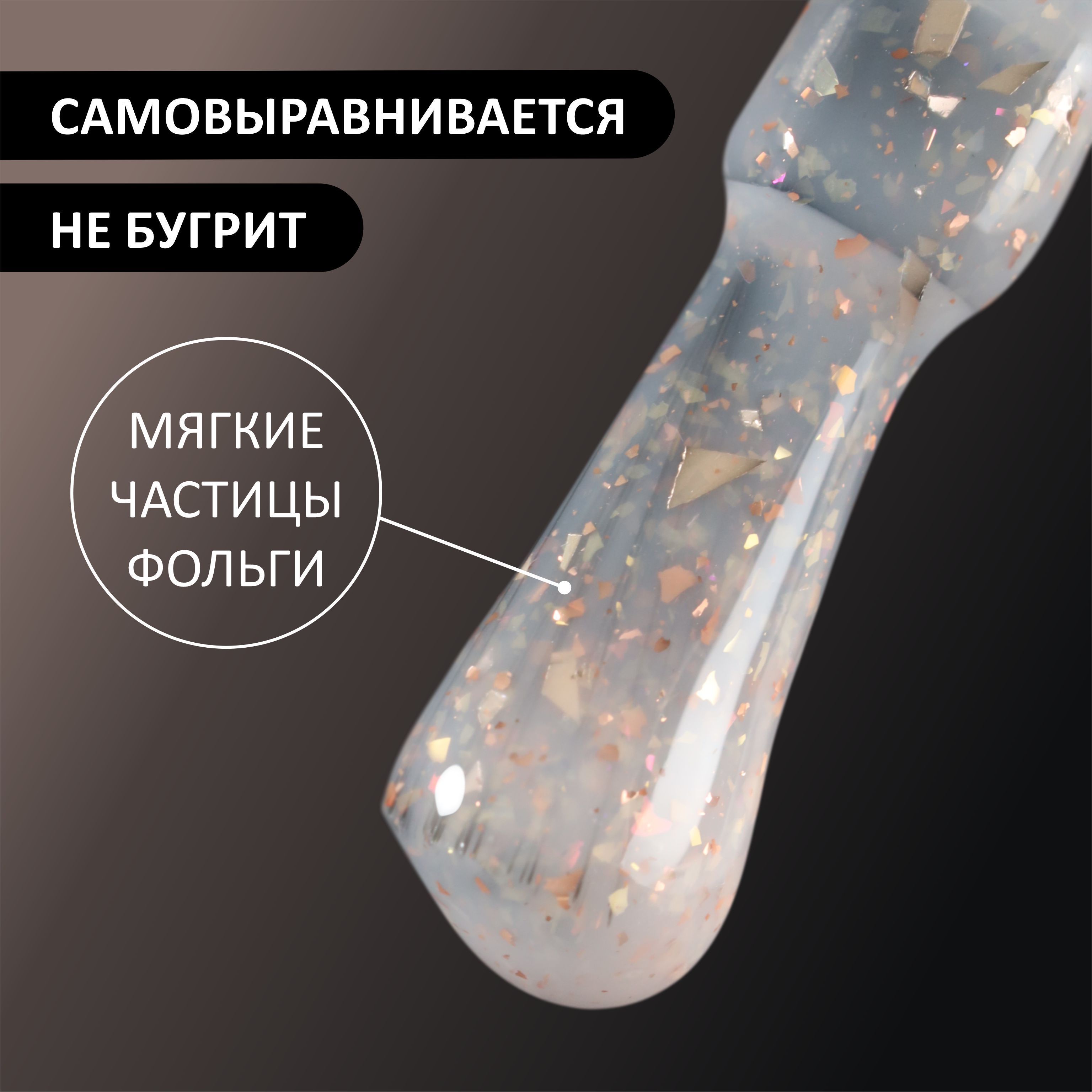 FOXY EXPERT ::: 8 мл. Гель лак с ЗОЛОТОЙ поталью для маникюра POTAL #01 Светло-бежевый. Полупрозрачный, витражный гель лак для ногтей / Фокси Эксперт /