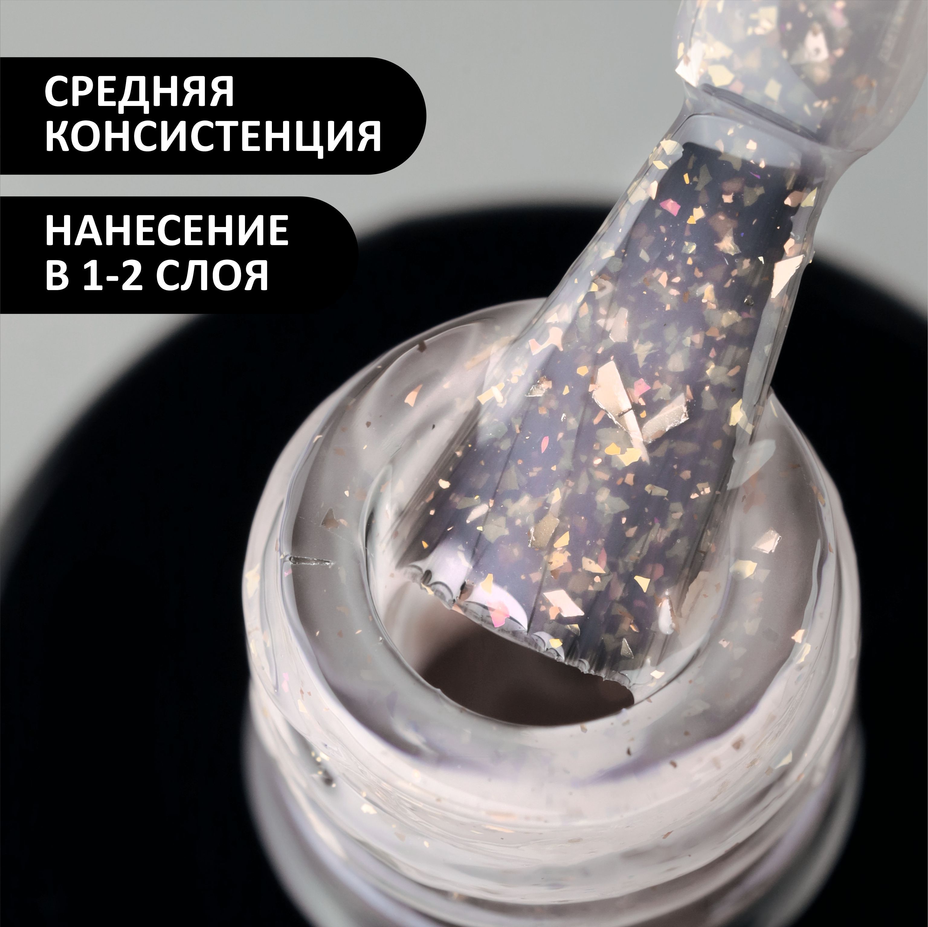 Советуем аккуратно и тщательно перемешать состав перед применением для получения однородной структуры. Для насыщенности цвета рекомендуется наносить в 2 слоя. Для достижения витражного эффекта рекомендуем наносить гель-лак в 1 слой.