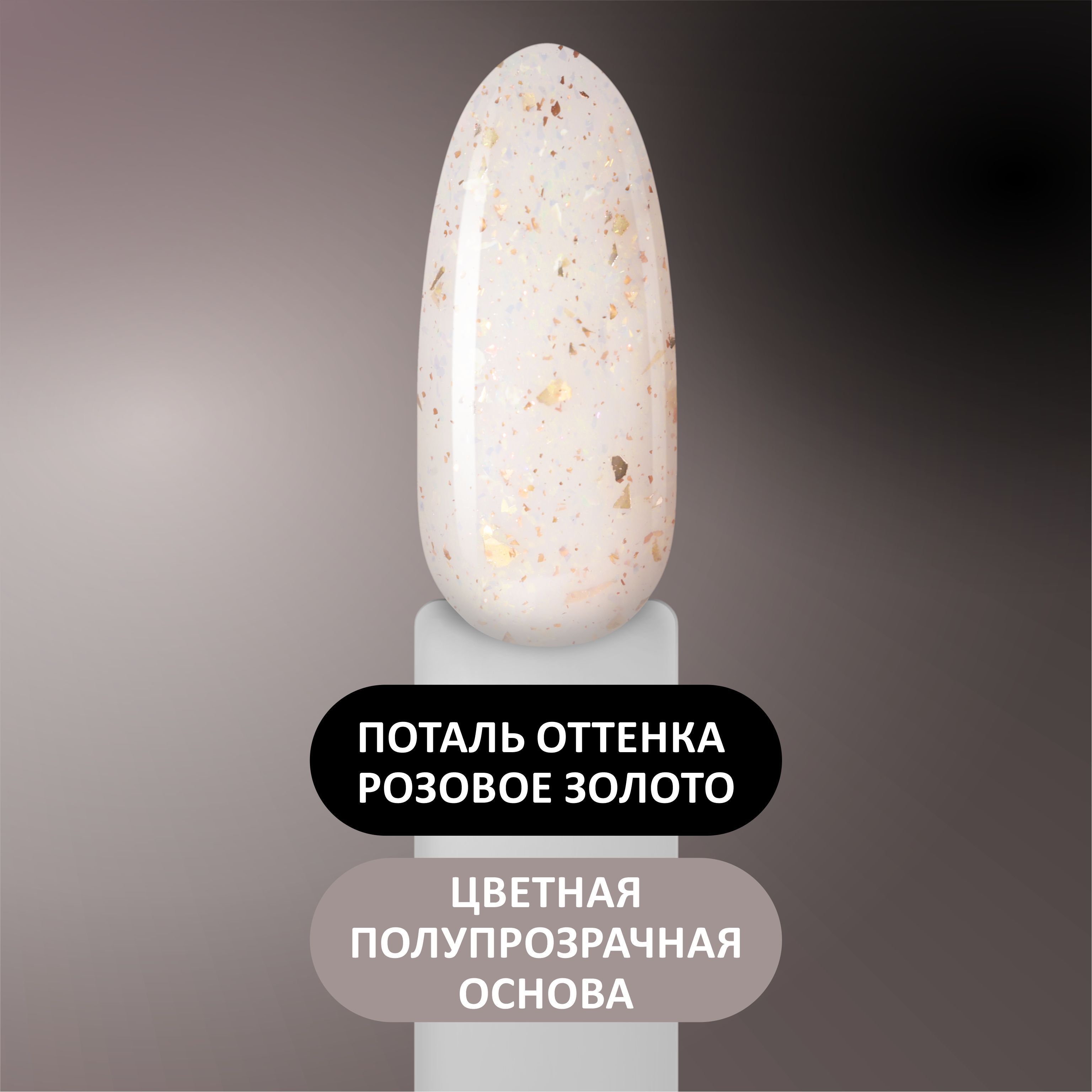 • полупрозрачный гель-лак с золотыми хлопьями (поталью);
