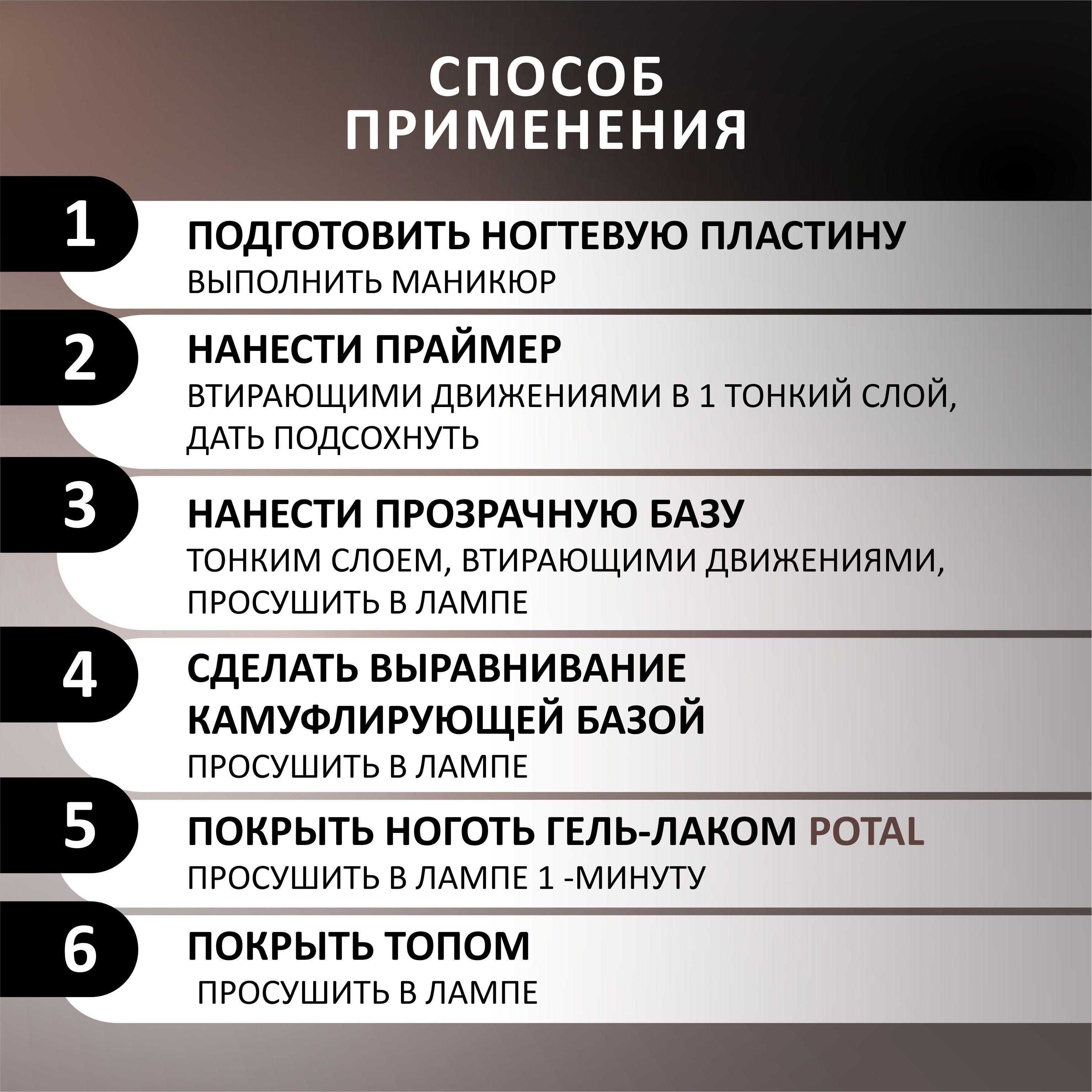 Для получения максимально надежного результата рекомендуем соблюдать следующую технологию работы с ногтем: