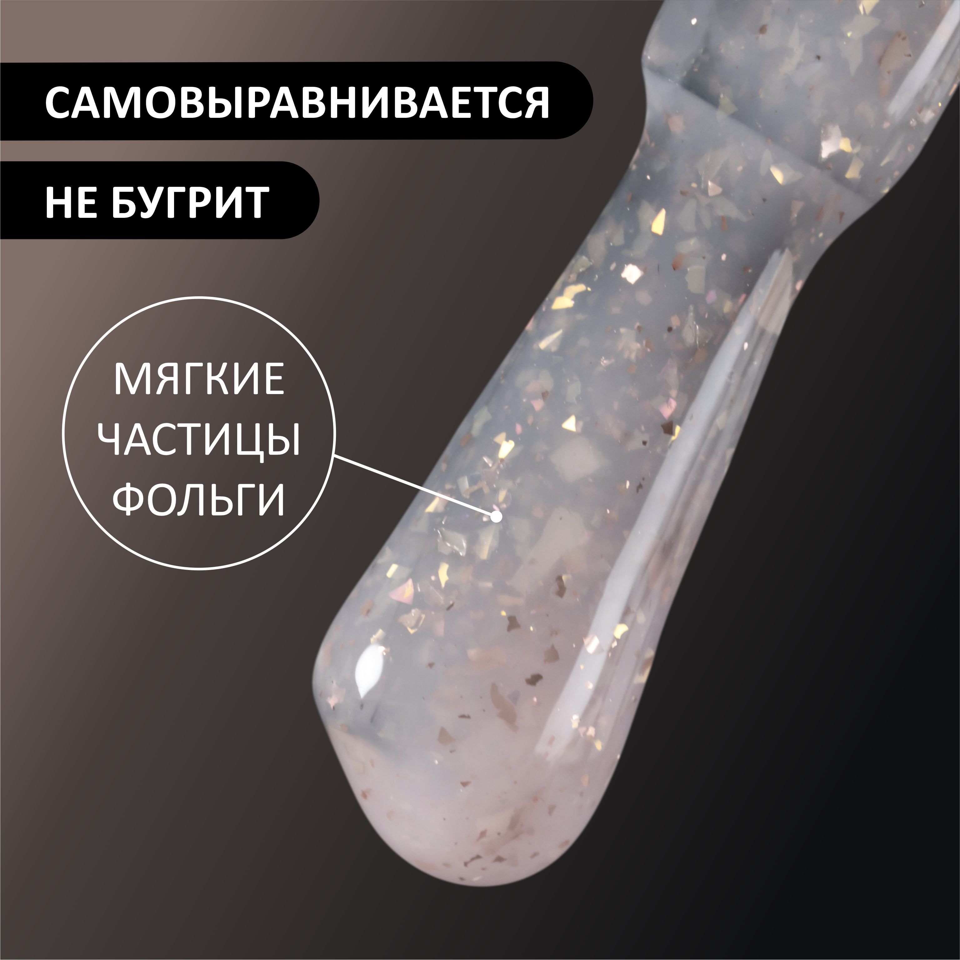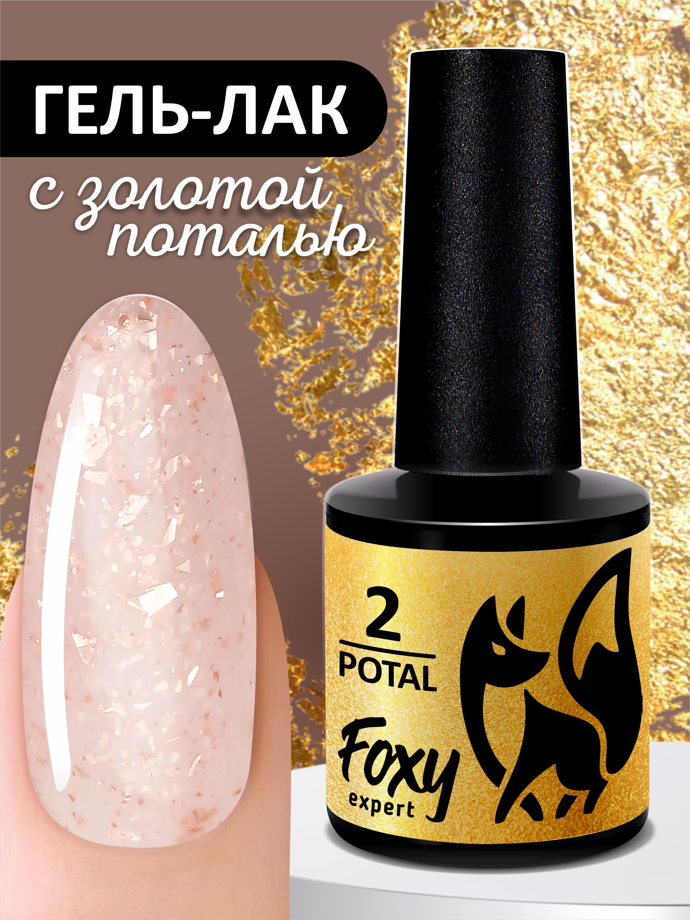 FOXY EXPERT ::: 8 мл. Гель лак с ЗОЛОТОЙ поталью для маникюра POTAL #02 Светло-бежевый. Полупрозрачный, витражный гель лак для ногтей / Фокси Эксперт /