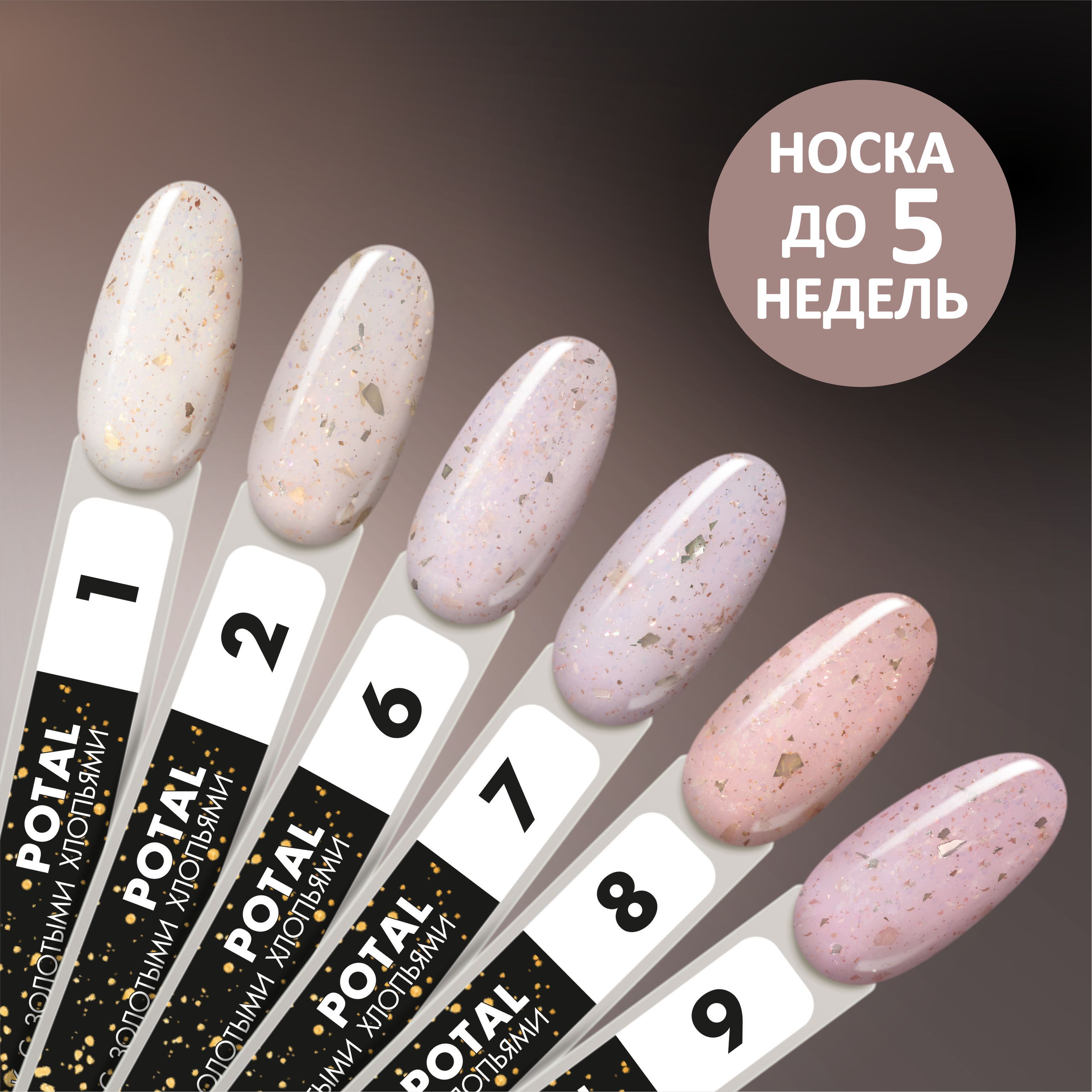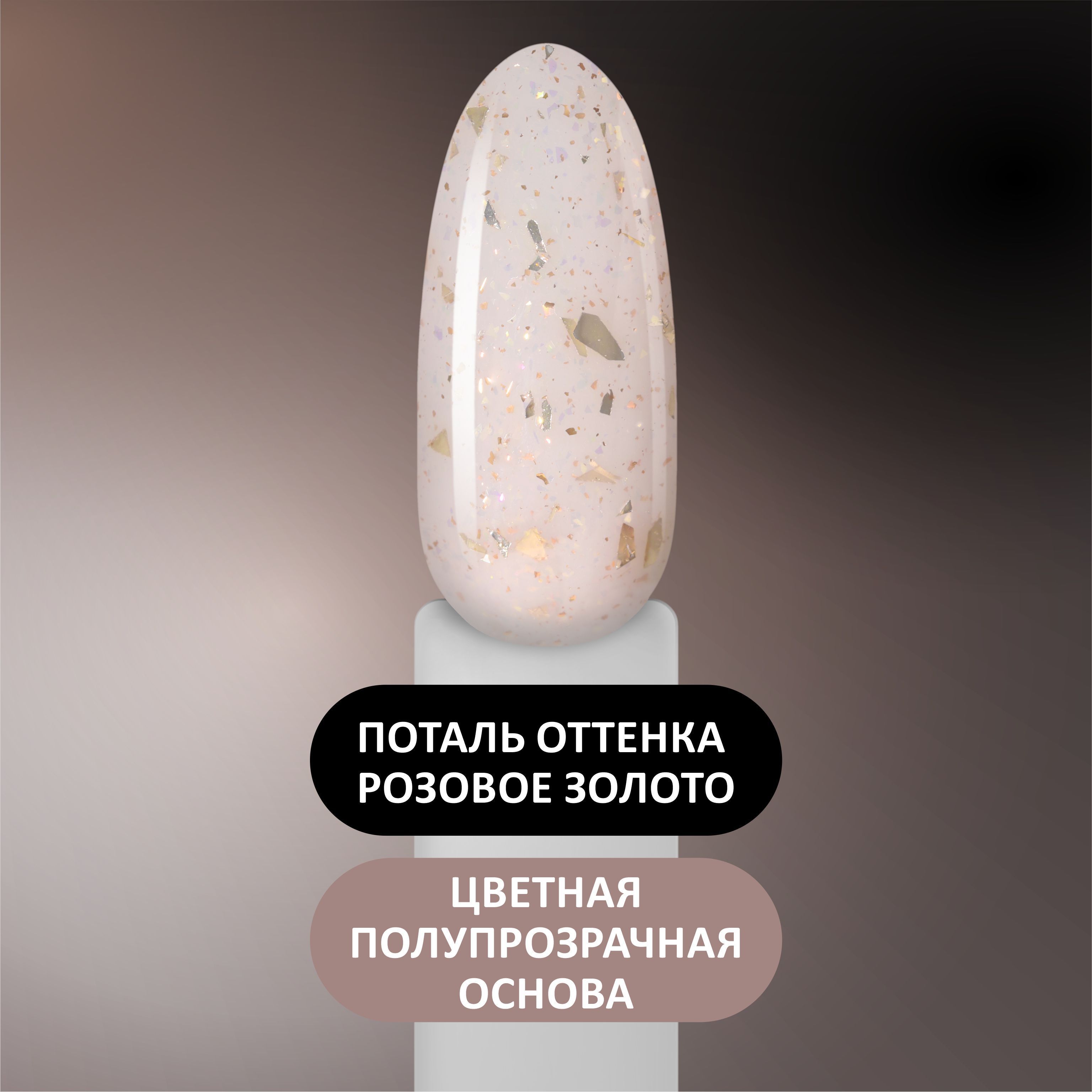 • полупрозрачный гель-лак с золотыми хлопьями (поталью);