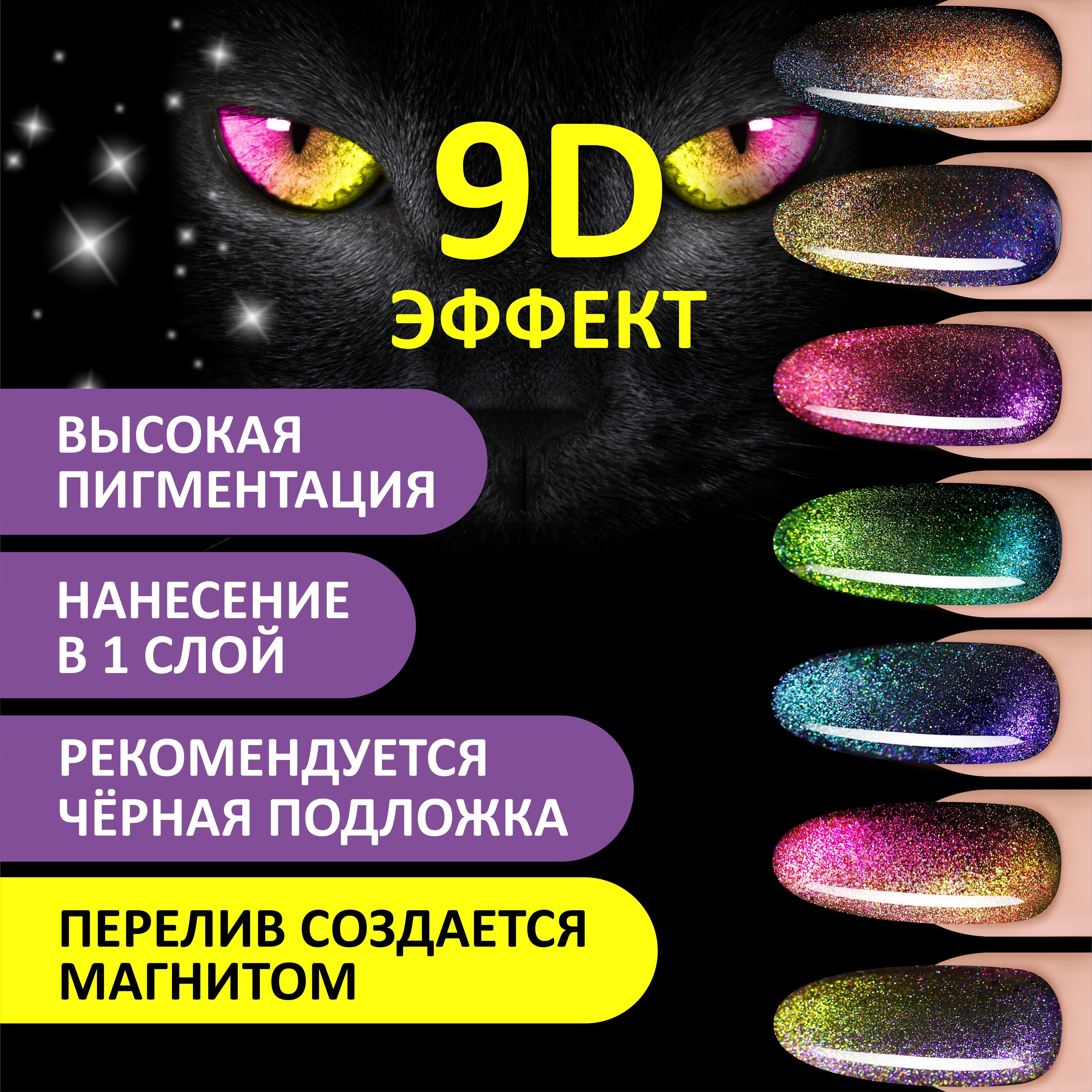 FOXY EXPERT ::: 8 мл. х 7. Набор гель лаков для ногтей "Кошачий глаз". Гель лаки для маникюра с блестками Cat's Eye 9D / Фокси Эксперт /