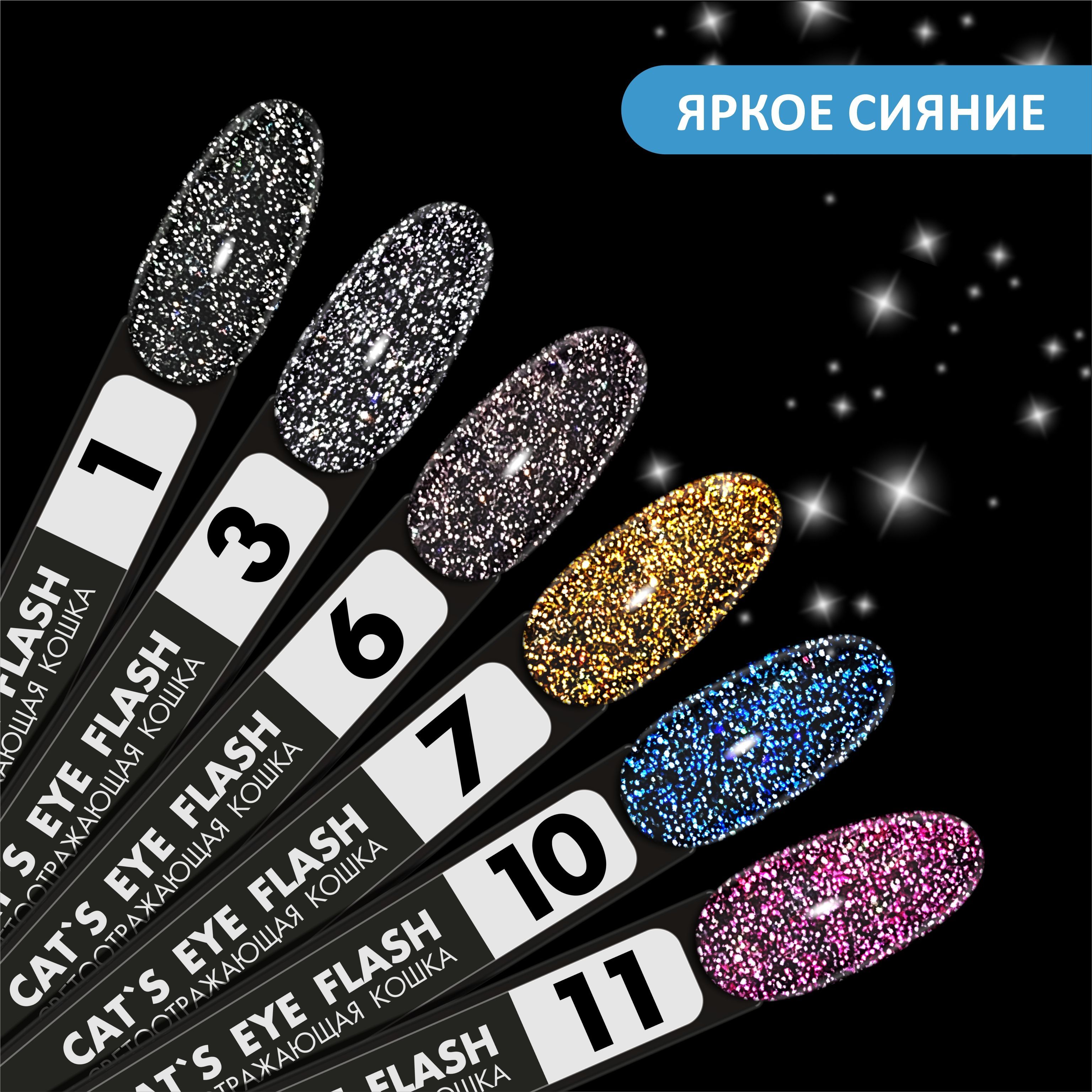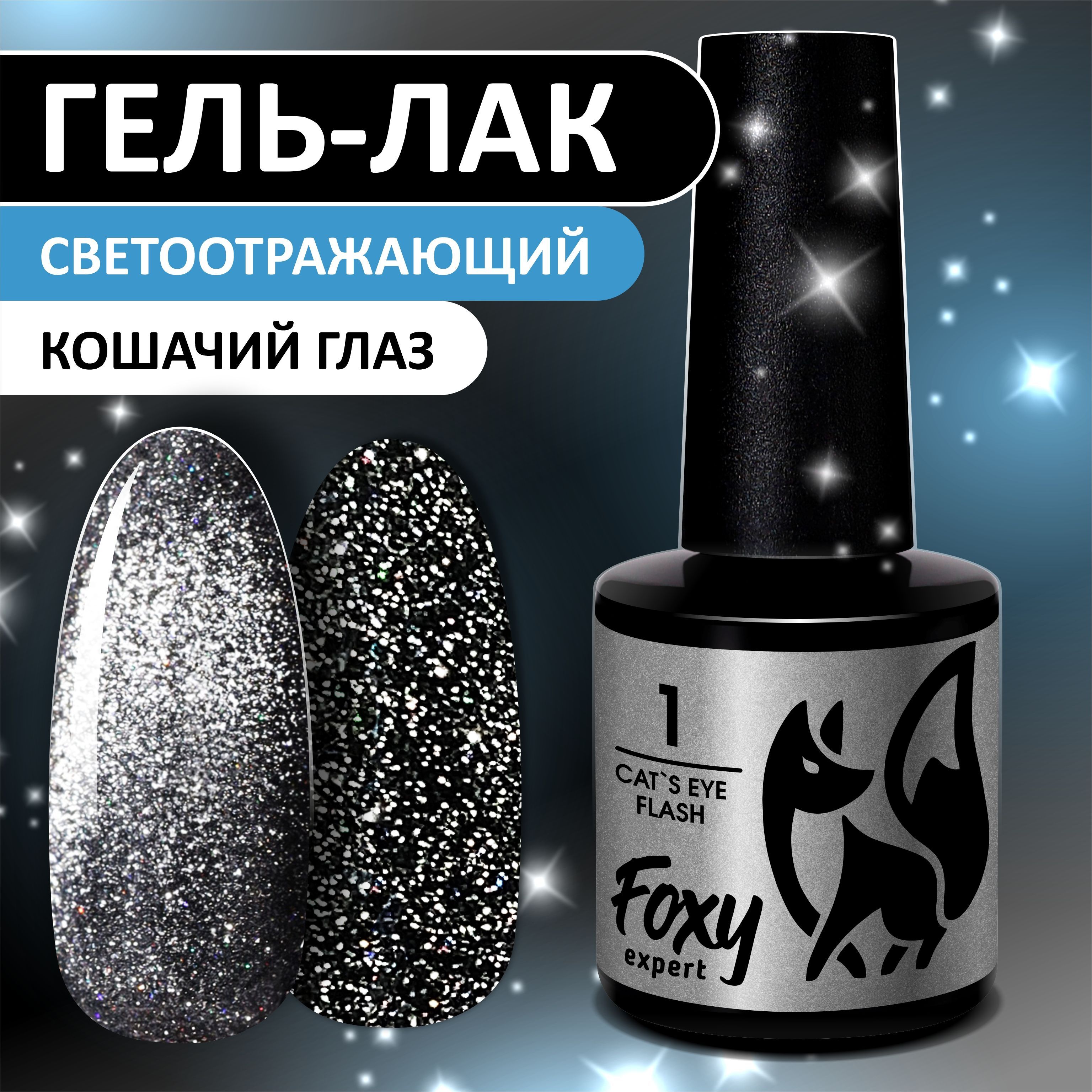 FOXY EXPERT ::: 8 мл. Кошачий глаз СВЕТООТРАЖАЮЩИЙ гель лак для ногтей с блестками. Cat's Eye Flash #01 / Фокси Эксперт /