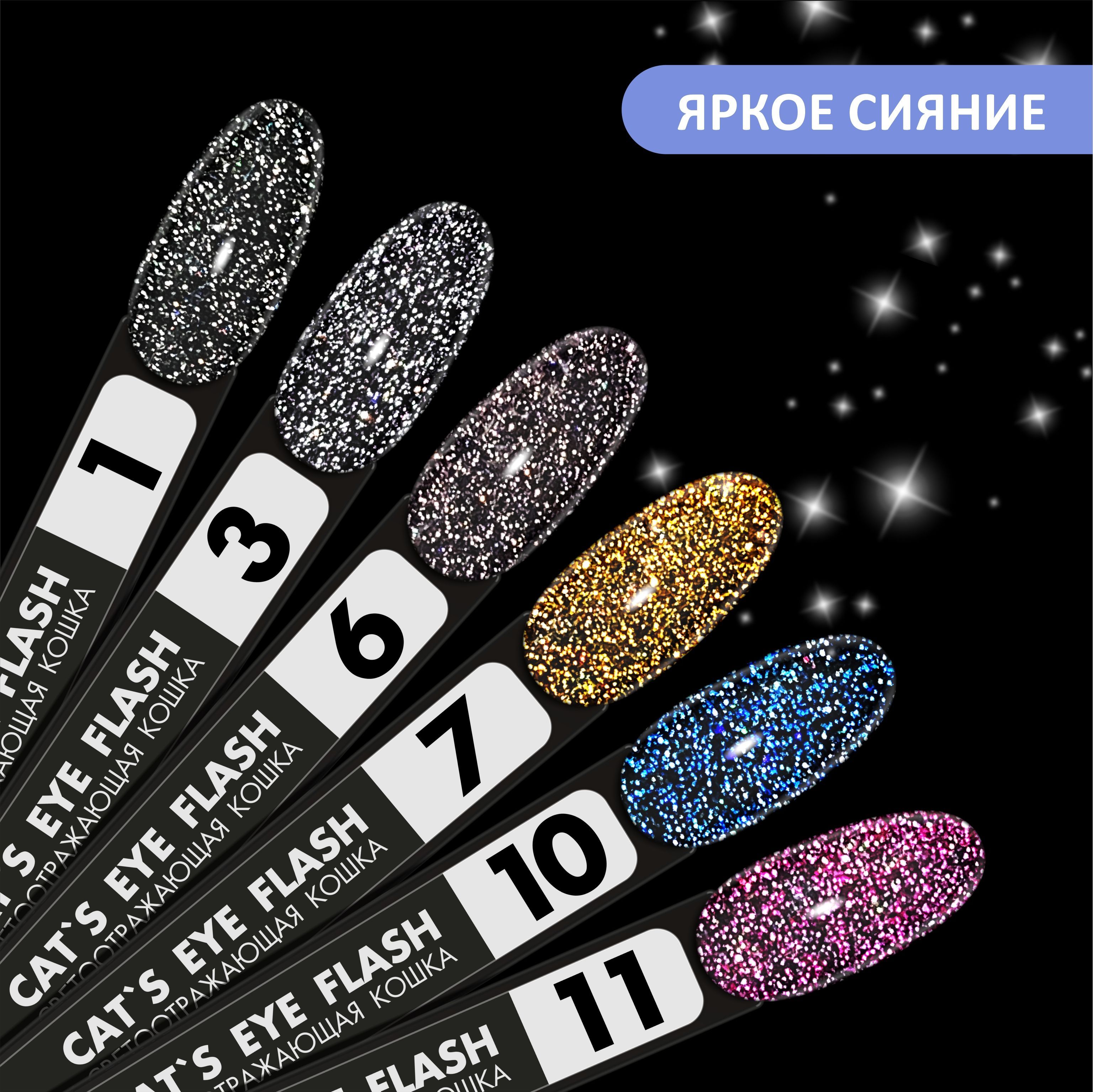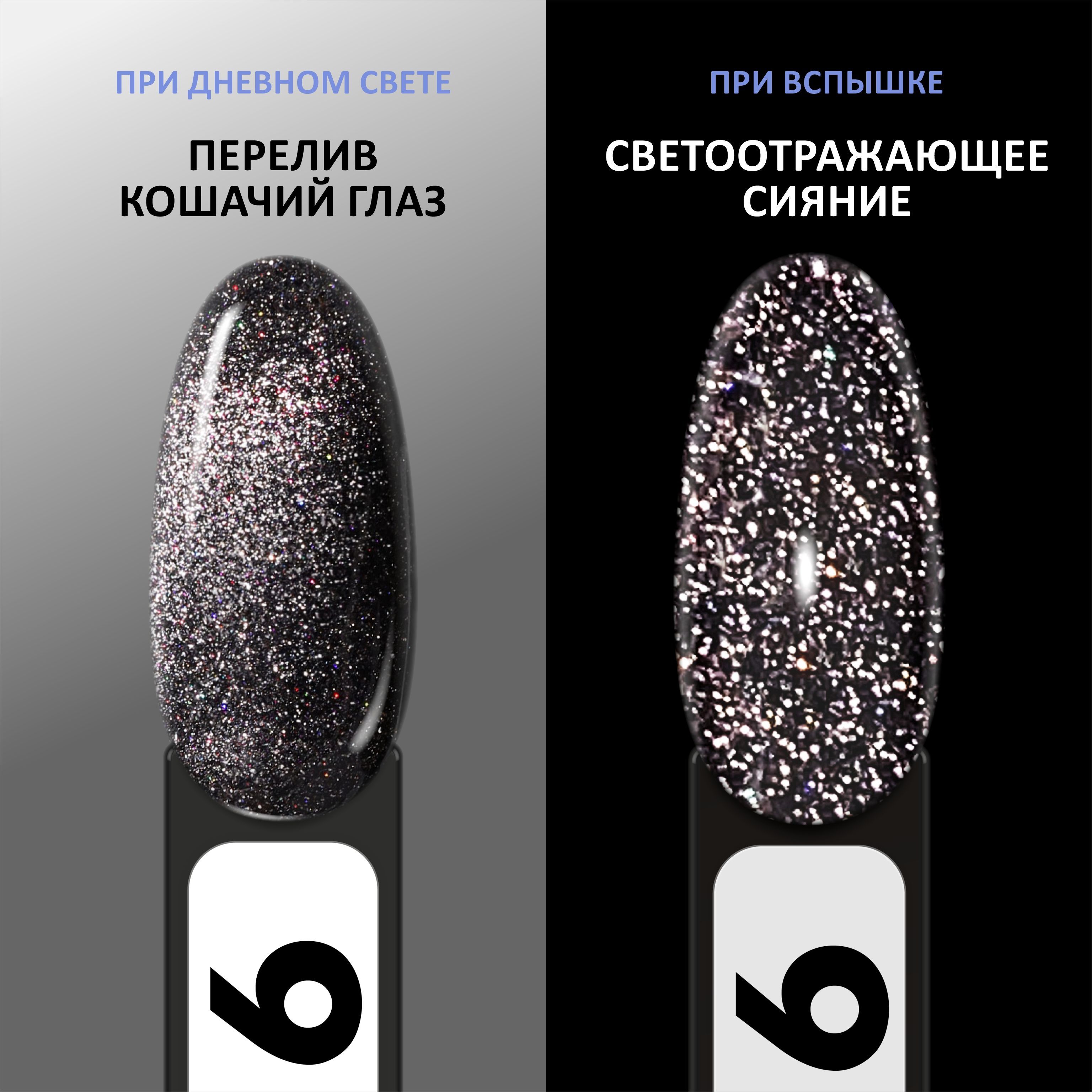 FOXY EXPERT ::: 8 мл. Кошачий глаз СВЕТООТРАЖАЮЩИЙ гель лак для ногтей с блестками. Cat's Eye Flash #06 / Фокси Эксперт /