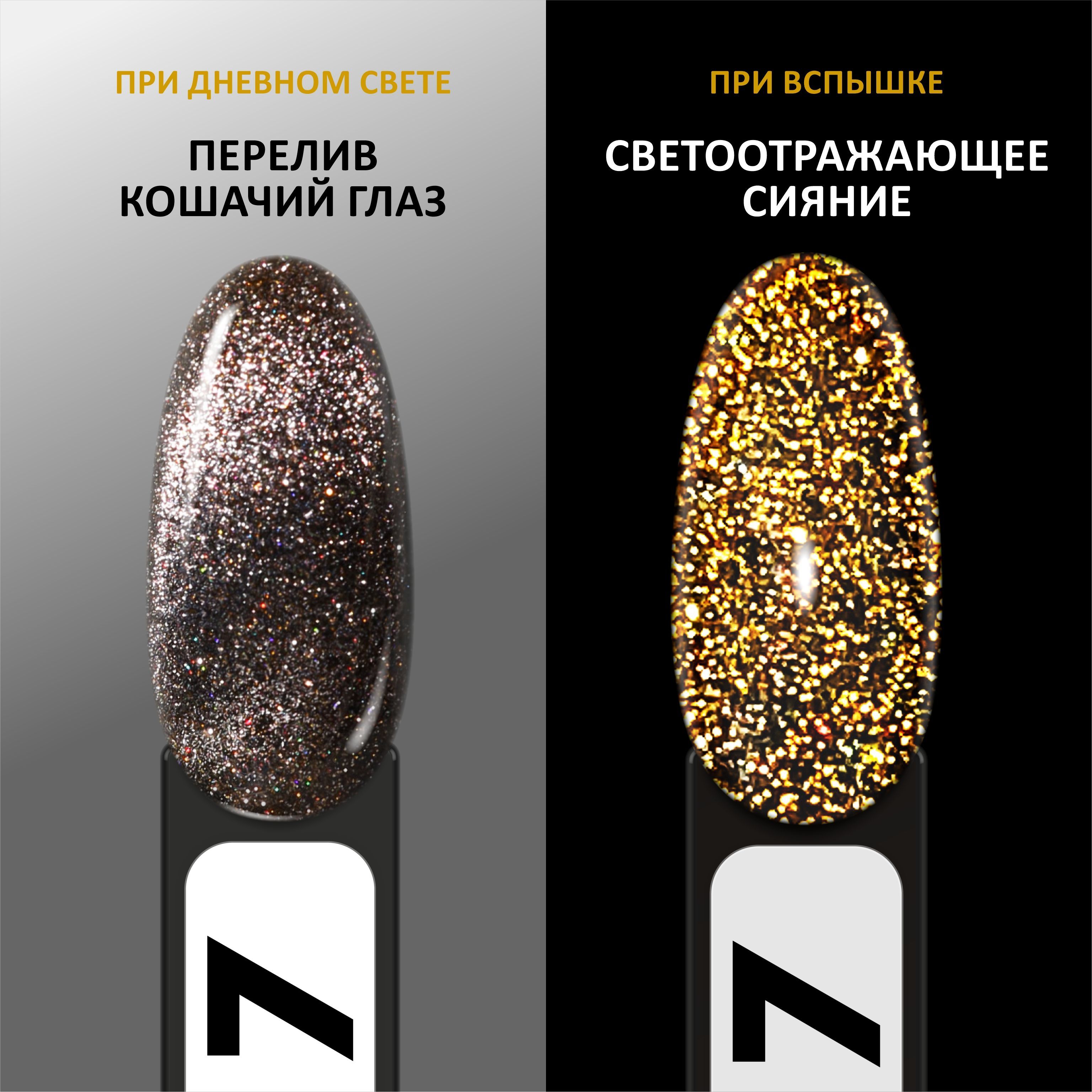 Описание: Foxy expert Cat's Eye Flash — кошачий глаз Foxy 9Д с объемным разноцветным бликом и светоотражающими включениями.