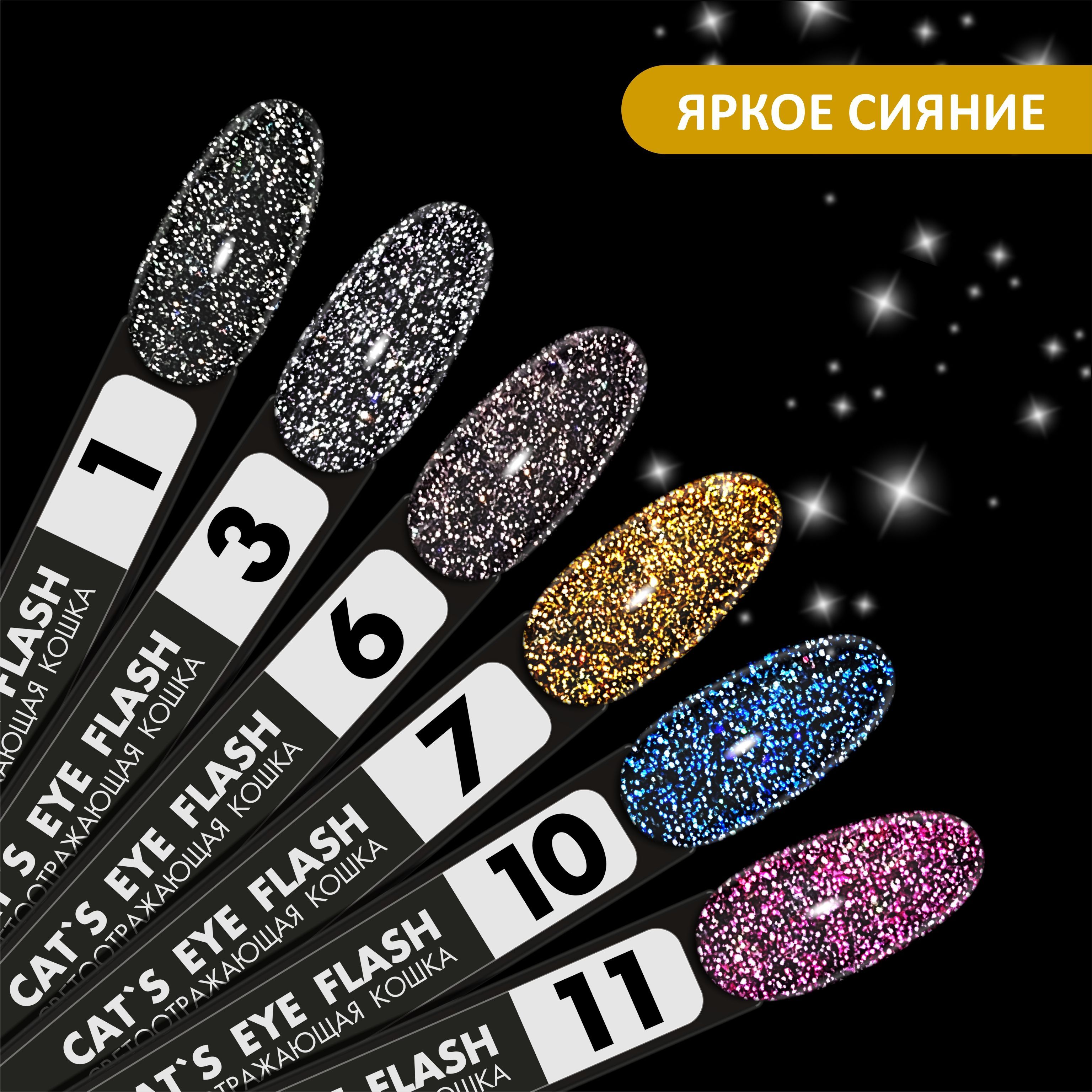 FOXY EXPERT ::: 8 мл. Кошачий глаз СВЕТООТРАЖАЮЩИЙ гель лак для ногтей с блестками. Cat's Eye Flash #07 / Фокси Эксперт /
