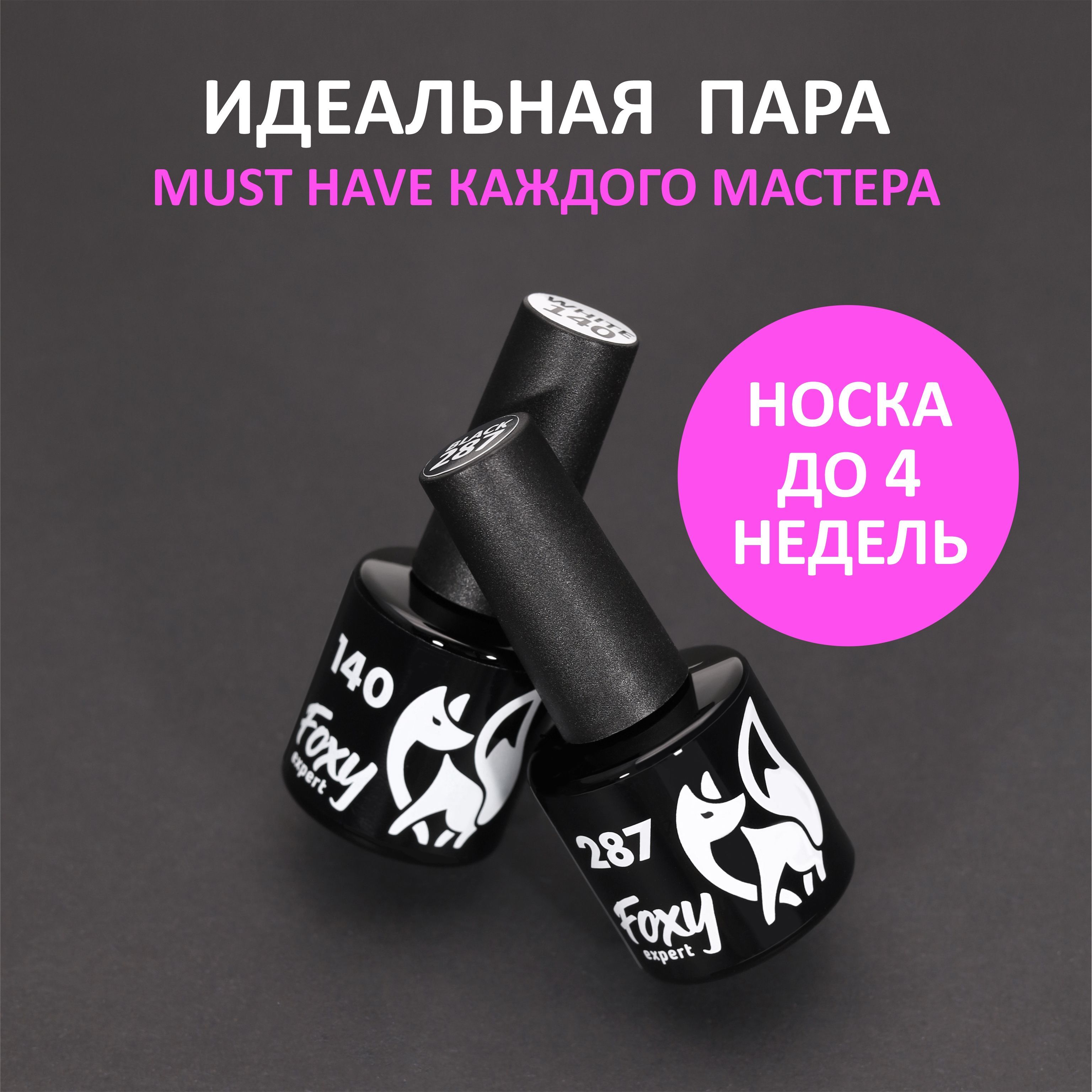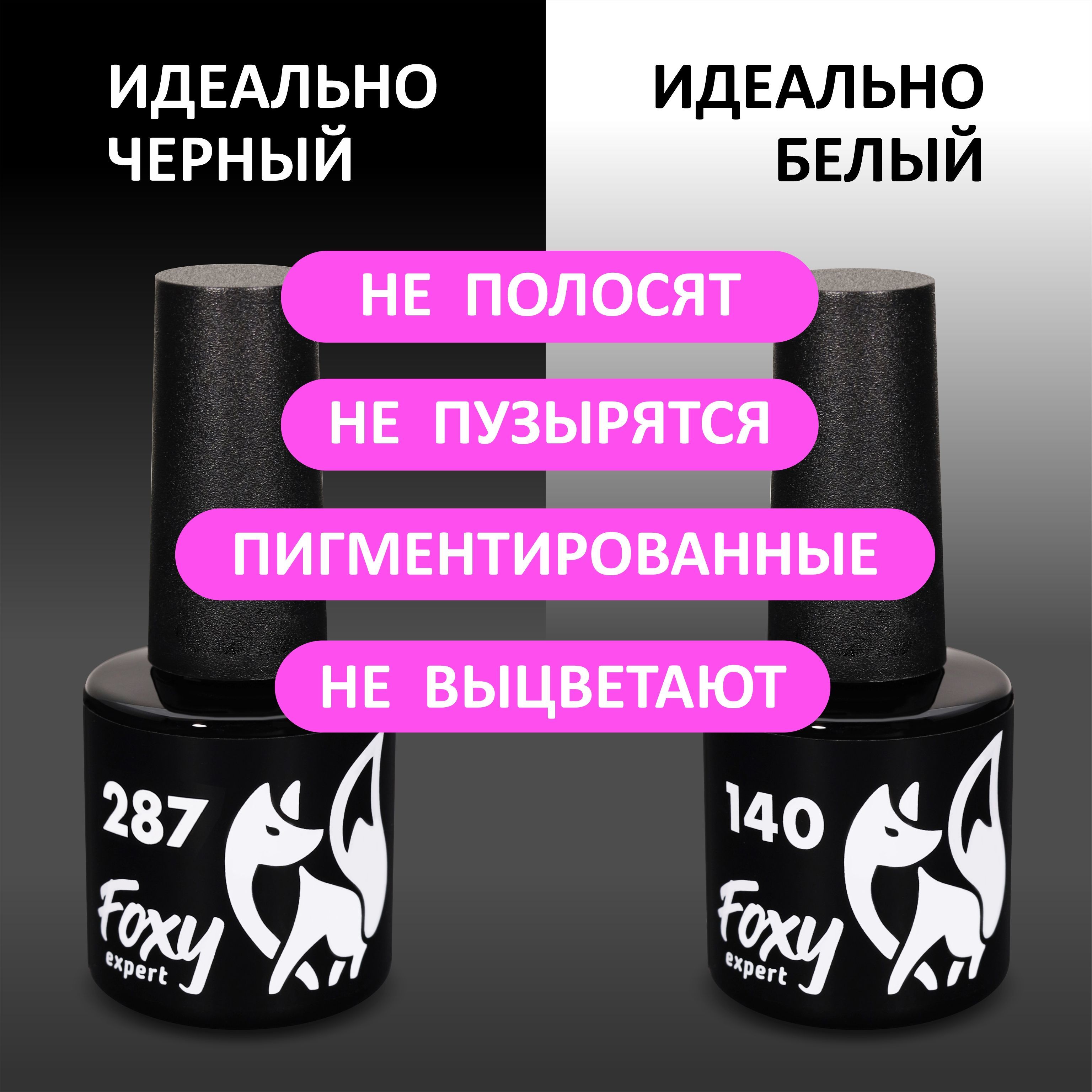 FOXY EXPERT ::: 8ml х 2. Гель лак для ногтей ЧЕРНЫЙ И БЕЛЫЙ. Черный + белый - набор гель лаков для маникюра, #140, 8мл + #287, 8мл / Фокси Эксперт /