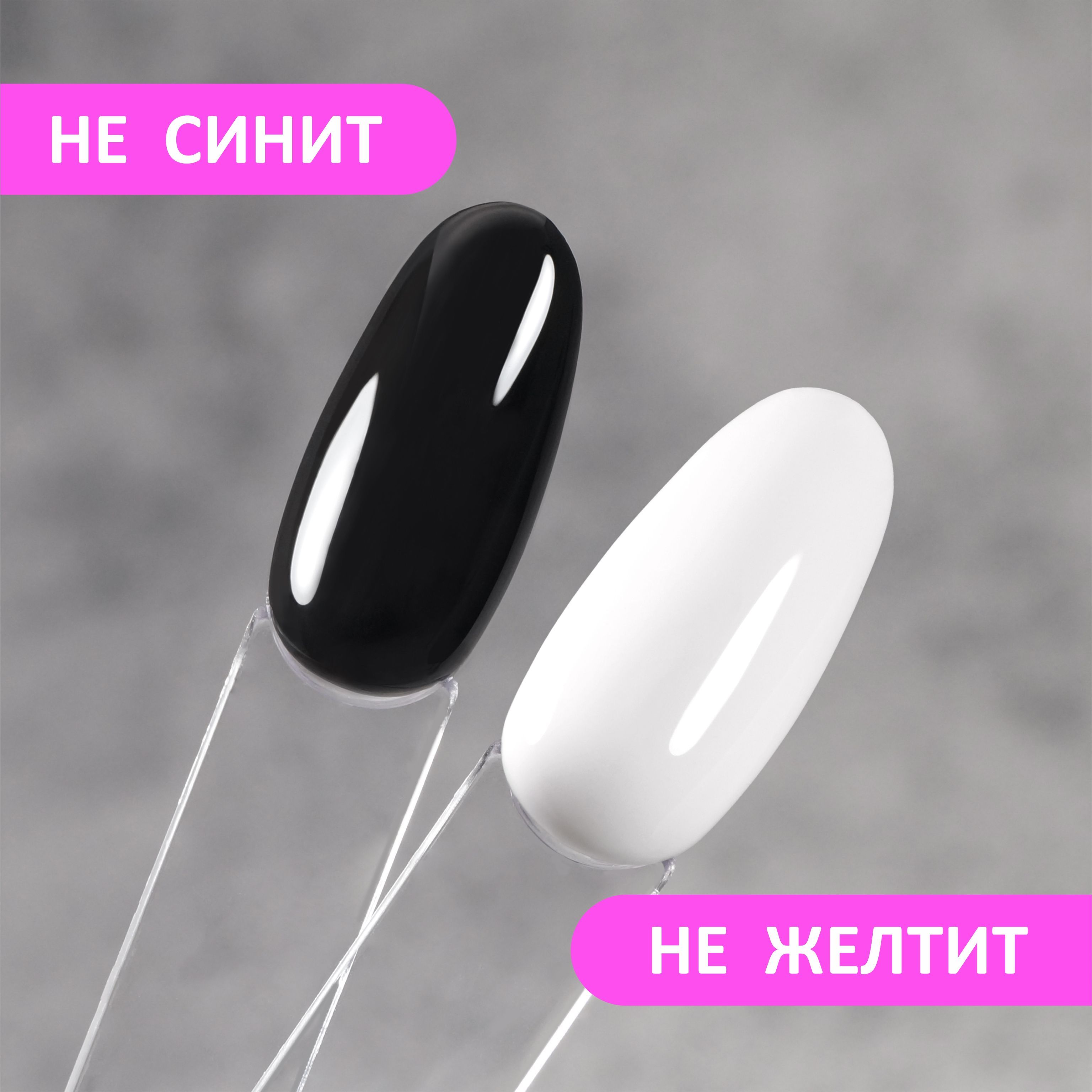 У данных гель-лаков плотный цвет, белый не желтит, черный не синит.