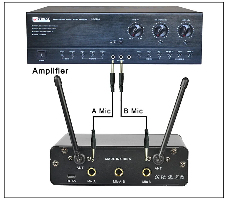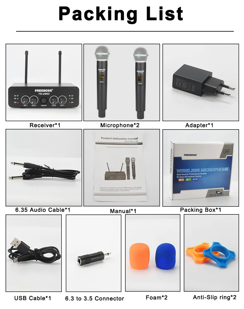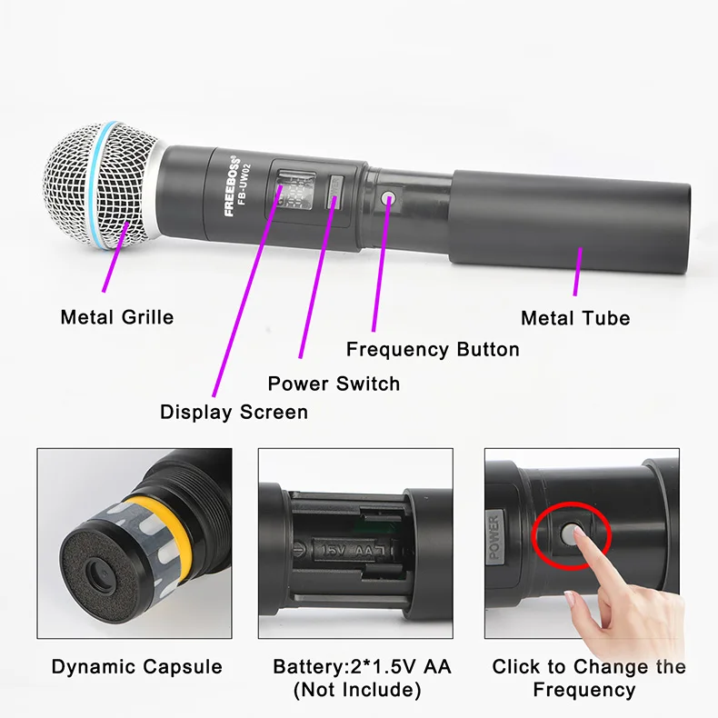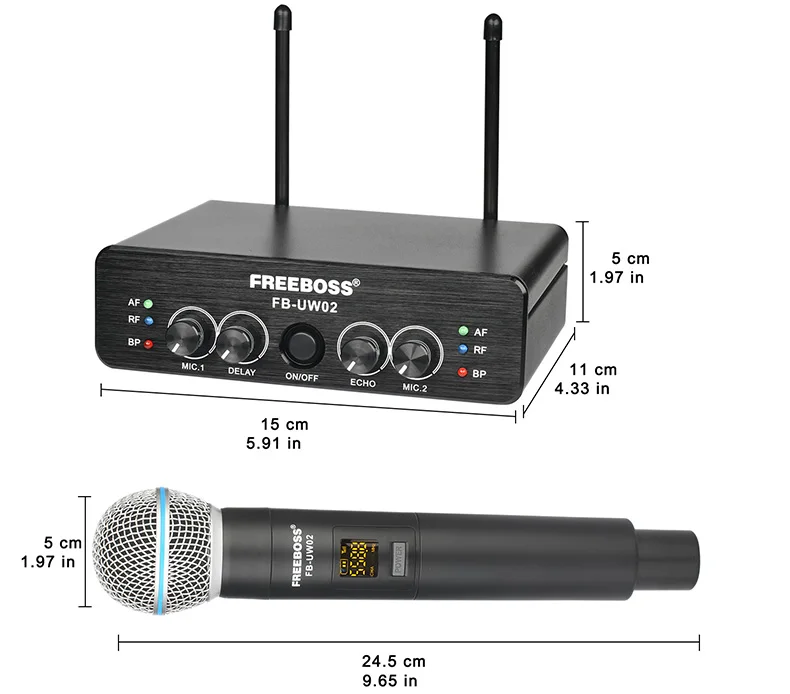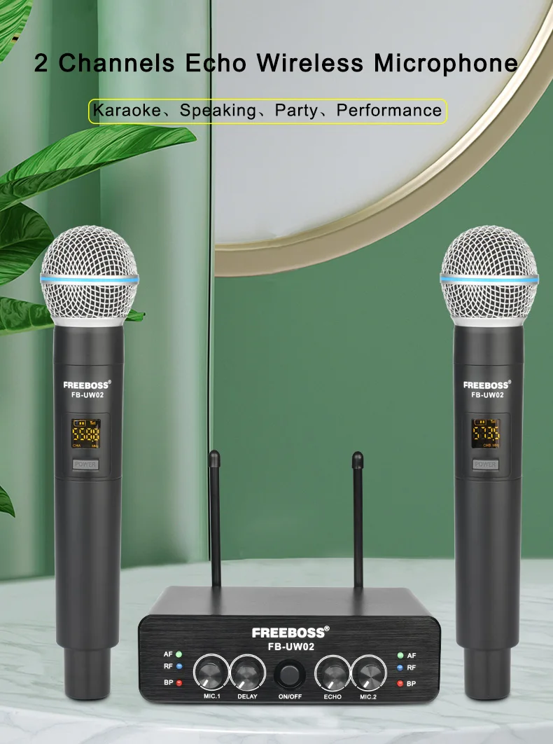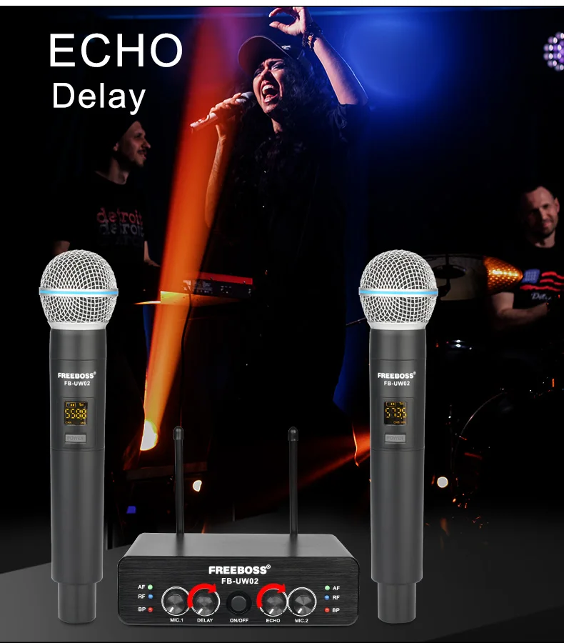 FREEBOSS 2 ручной UHF Echo беспроводной микрофон с эффектом задержки DC 5V Питание 6,3 мм разъем металлический динамический беспроводной микрофон