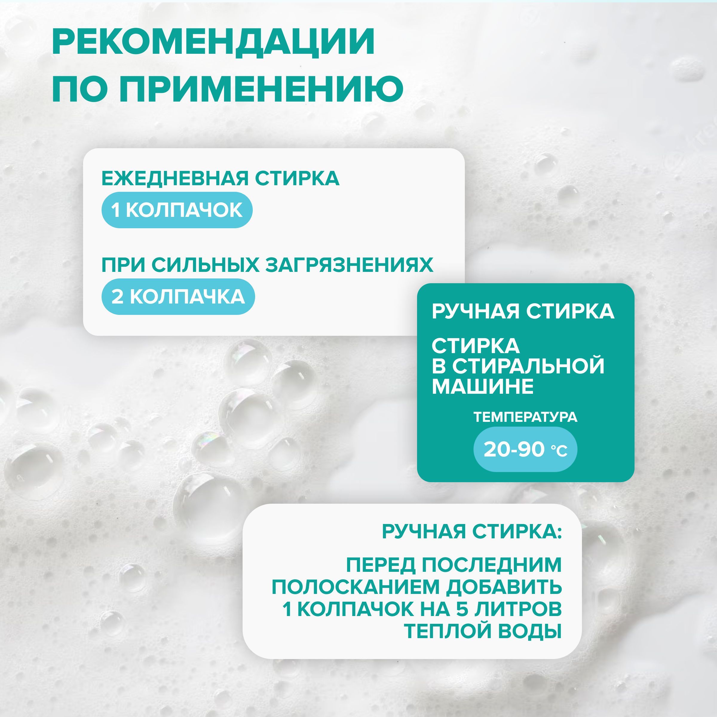 Ручная стирка: перед последним полосканием добавить 1 колпачок на 5 литров теплой воды.