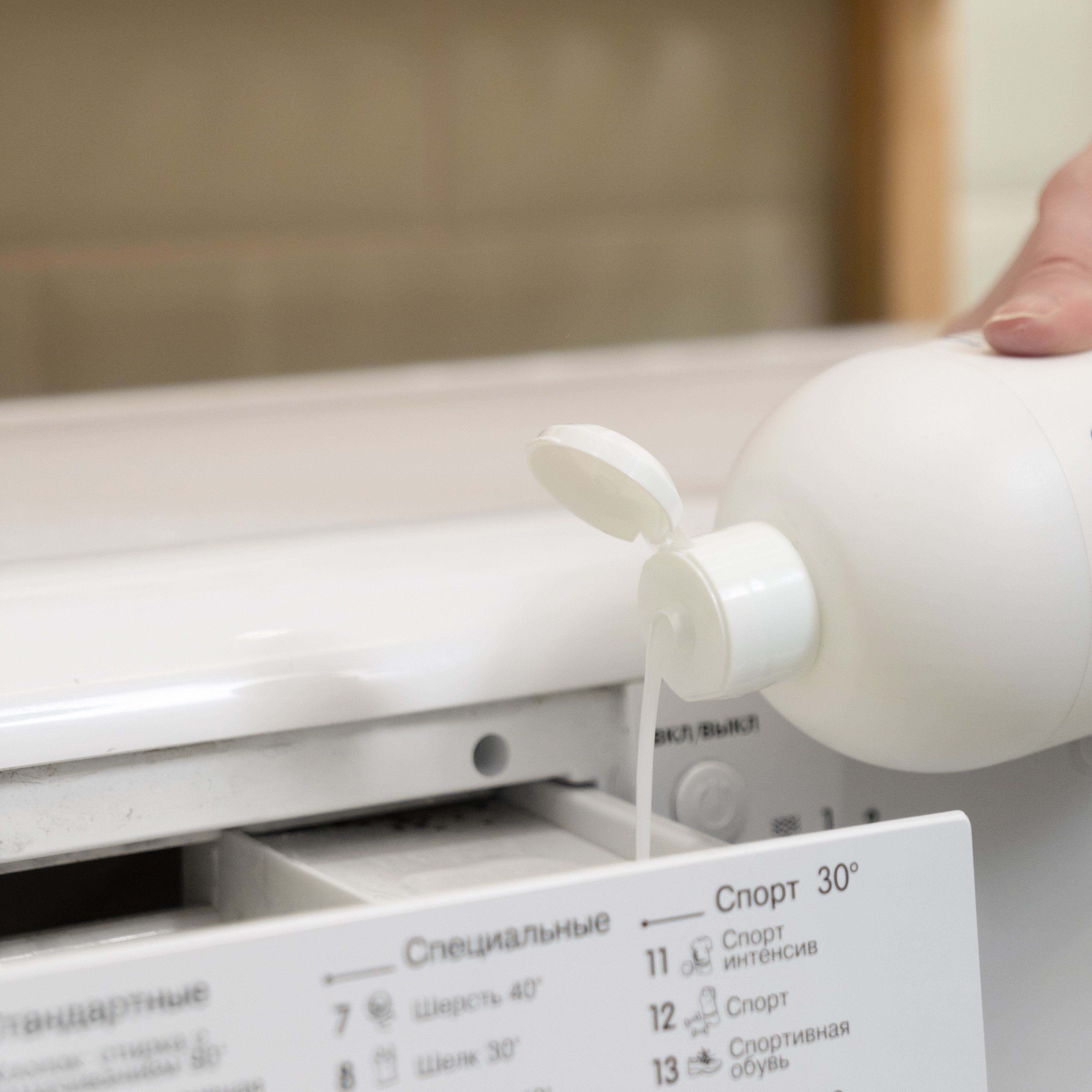 Машинная стирка: добавить в стиральную машину 1 или 2 колпачка.