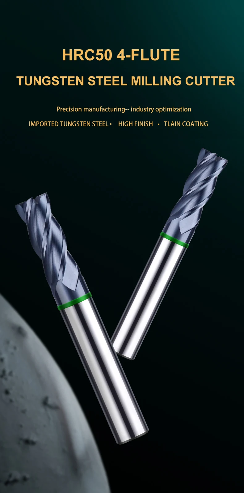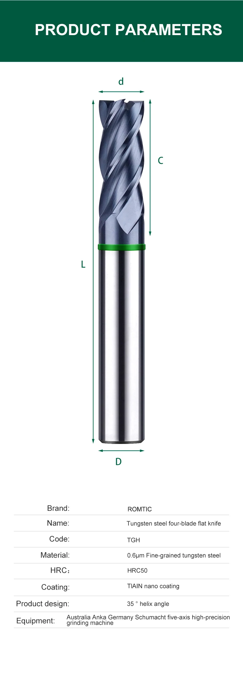 Фрезы ROMTIC TGH-HRC50 из карбида вольфрамовой стали 4F с цветным кольцевым покрытием, механические фрезы с плоским дном с ЧПУ, инструменты