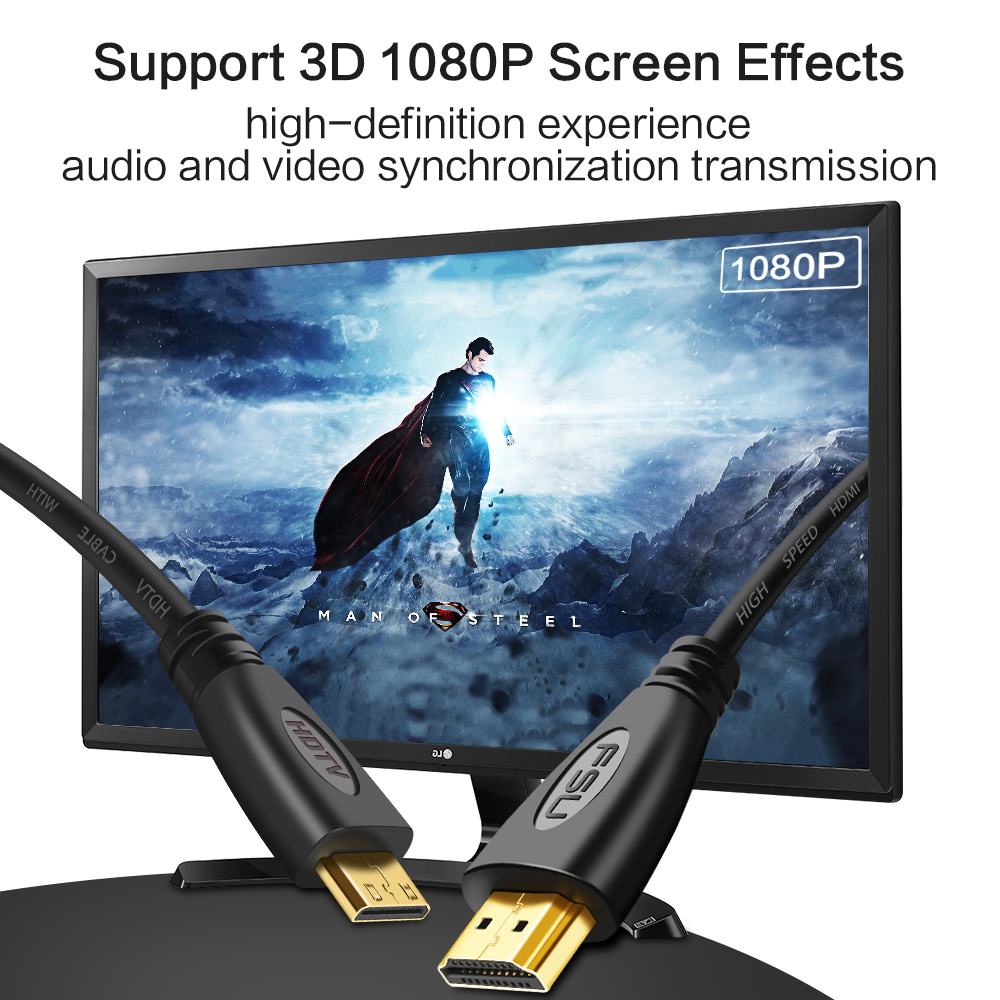 FSU Mini HDMI-совместимый кабель папа-папа 4K 1080P 3D
