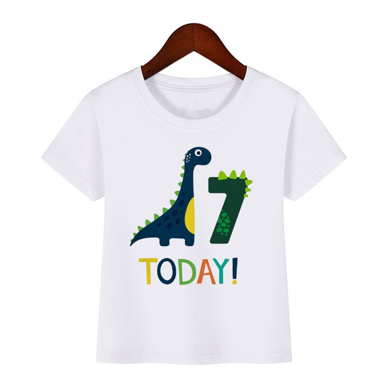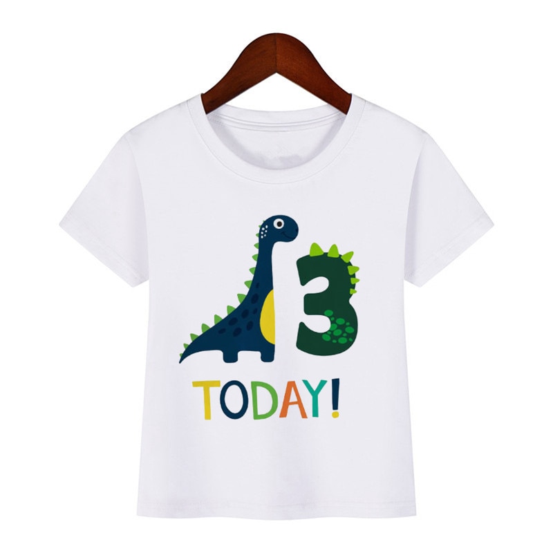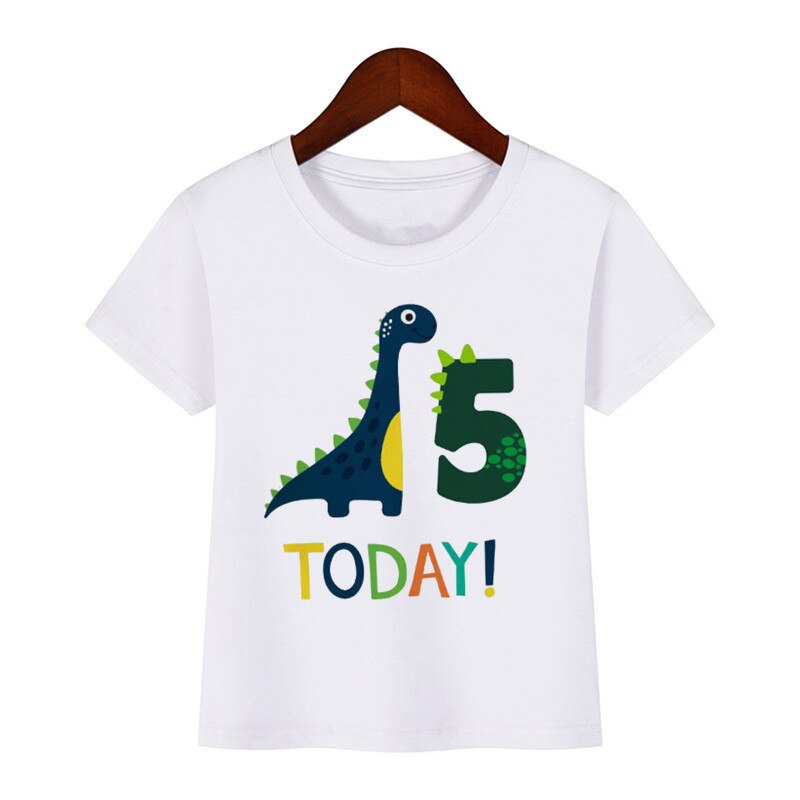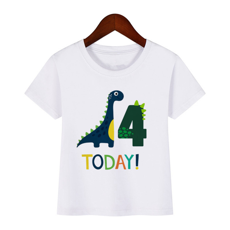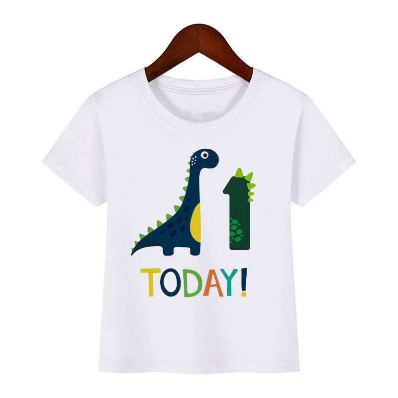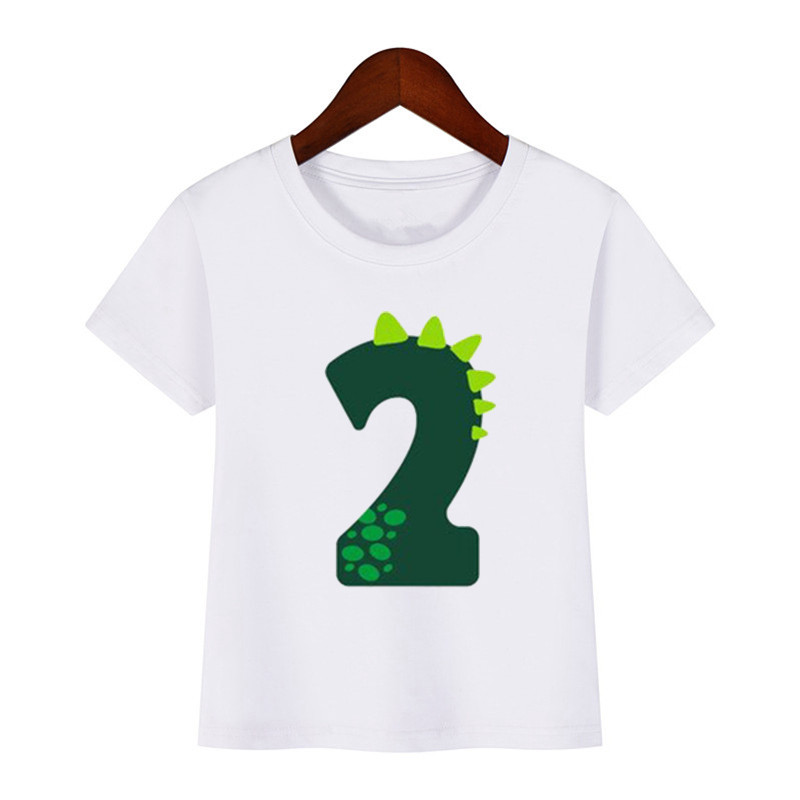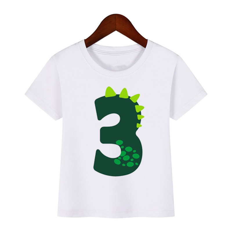 Футболка детская с динозавром, мультяшный подарок на день рождения, с цифрами, для мальчиков и девочек