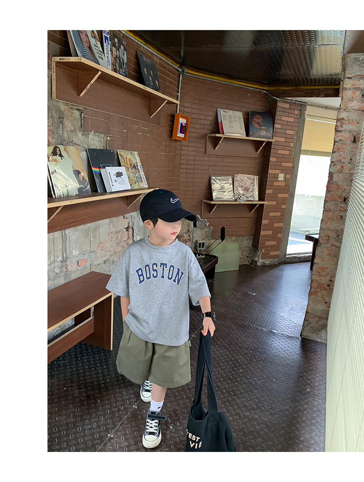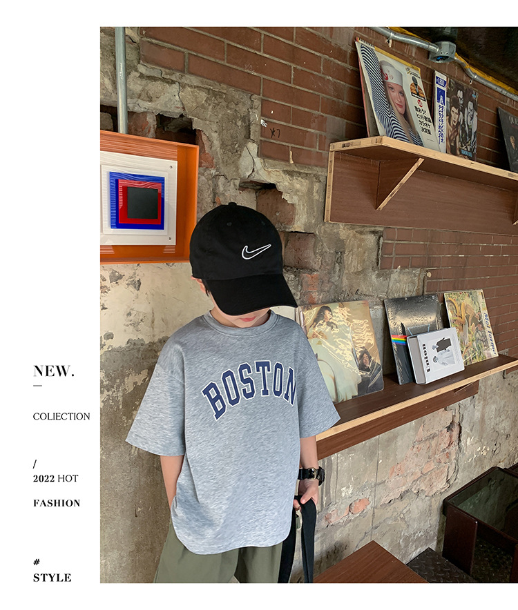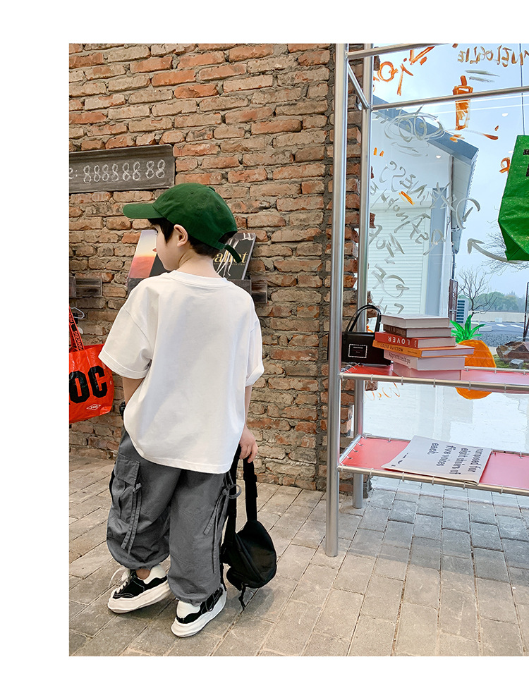 Футболка детская с круглым вырезом, Модный повседневный спортивный костюм с надписью, модный однотонный топ свободного покроя из мягкого хлопка, для мальчиков