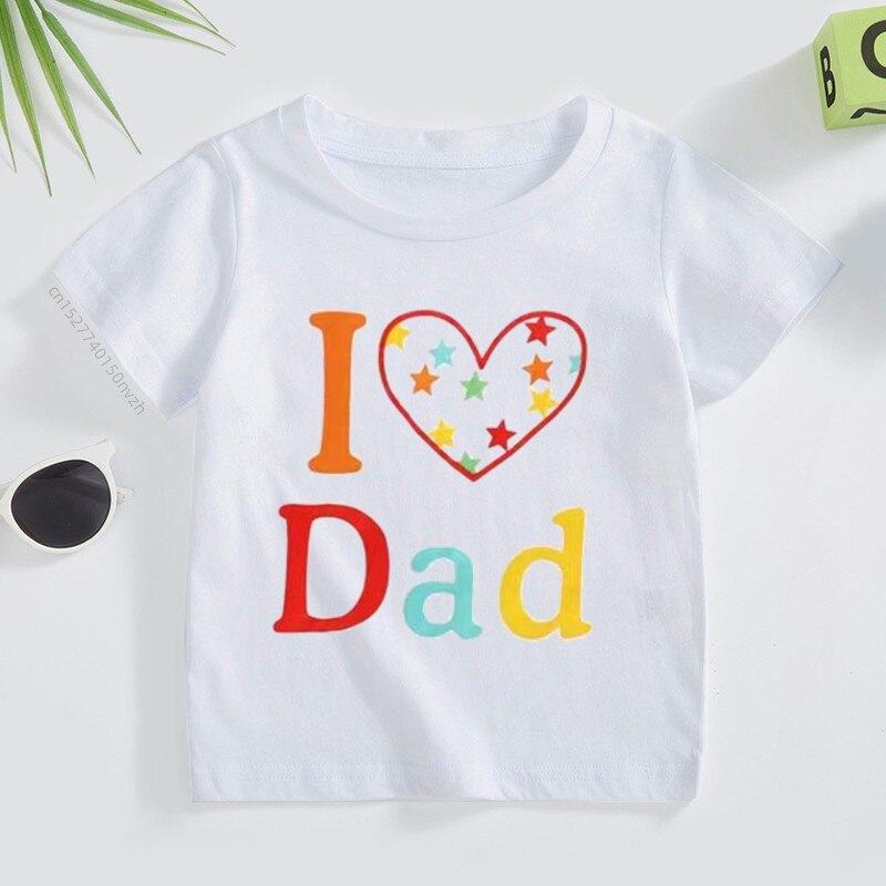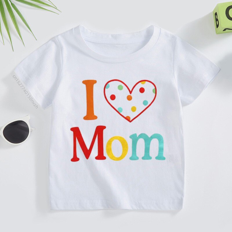 Футболка детская с надписью «I Love Mom», хлопковая рубашка с коротким рукавом для маленьких мальчиков и девочек, одежда для начинающих ходить детей, на лето