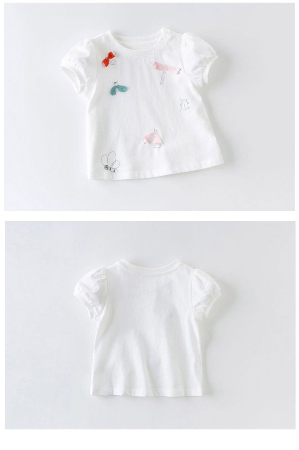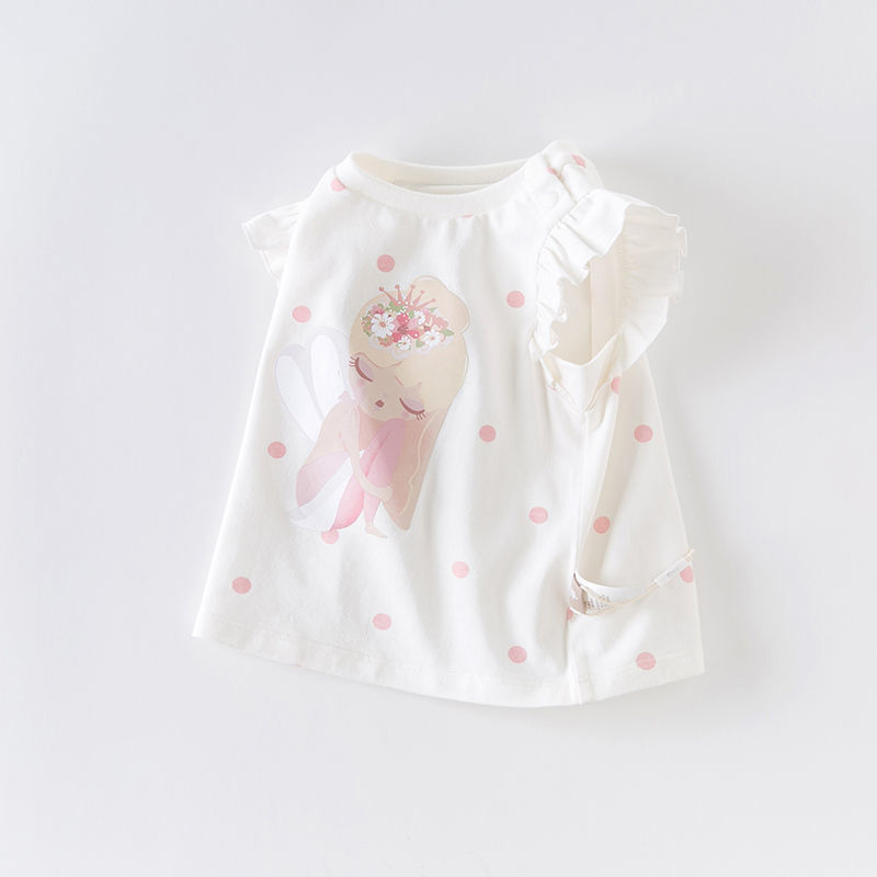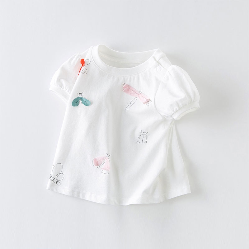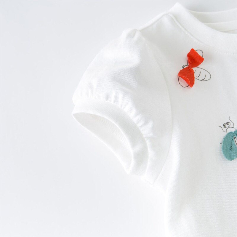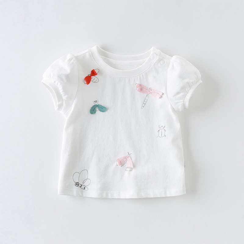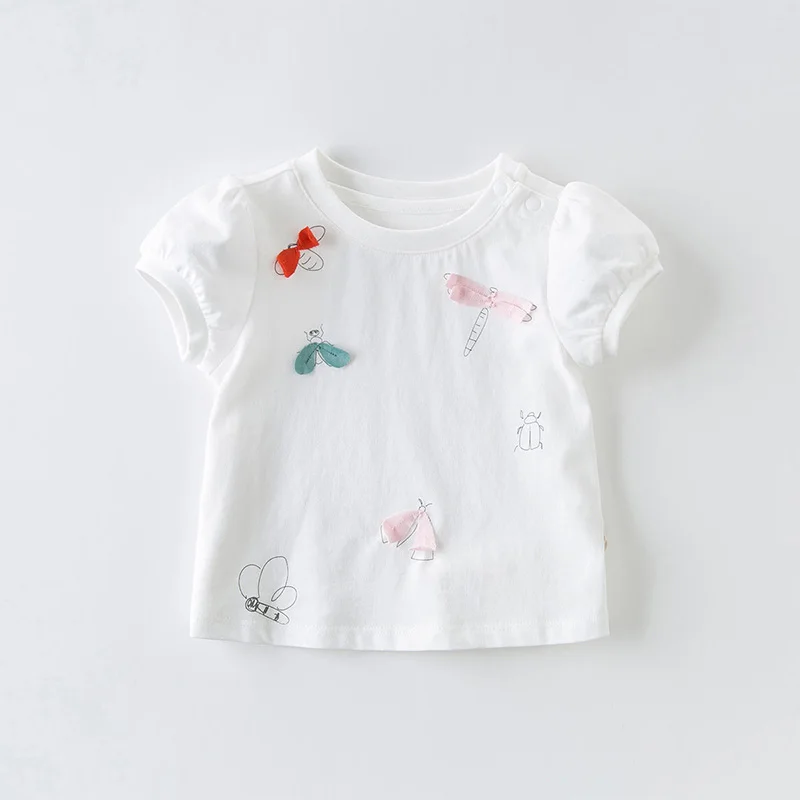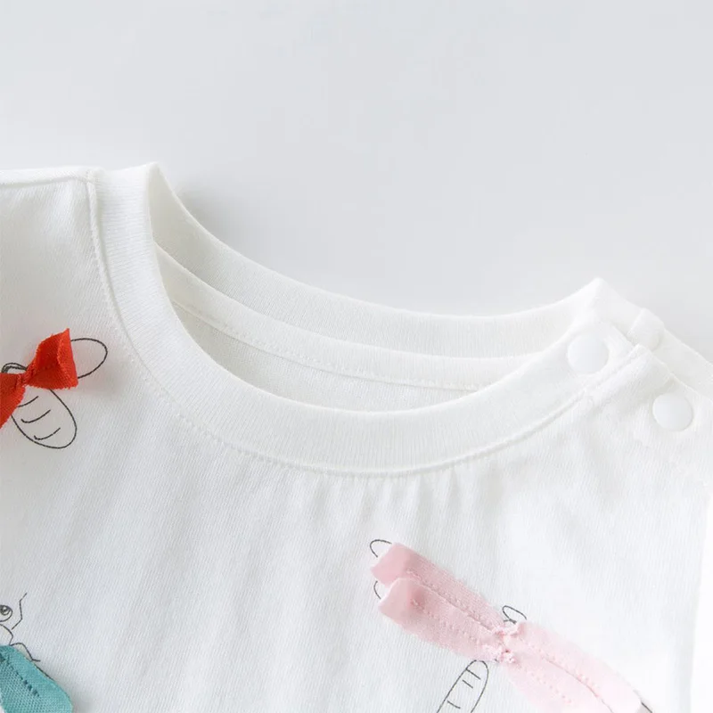 Футболка для девочек с коротким рукавом и милым мультяшным принтом из 100% чистого хлопка, повседневные летние топы с круглым вырезом и трехмерным украшением