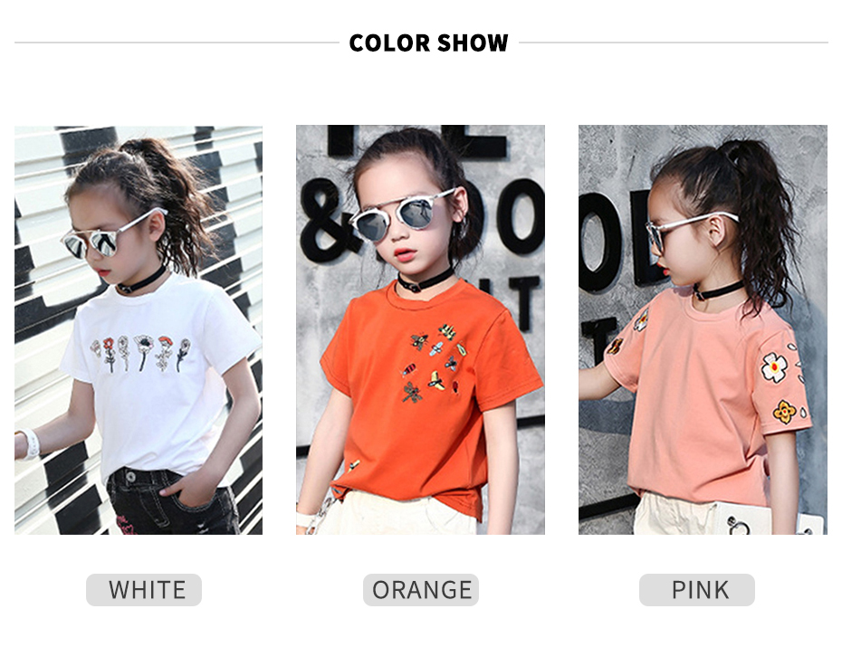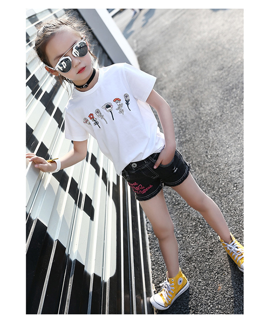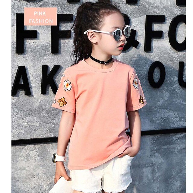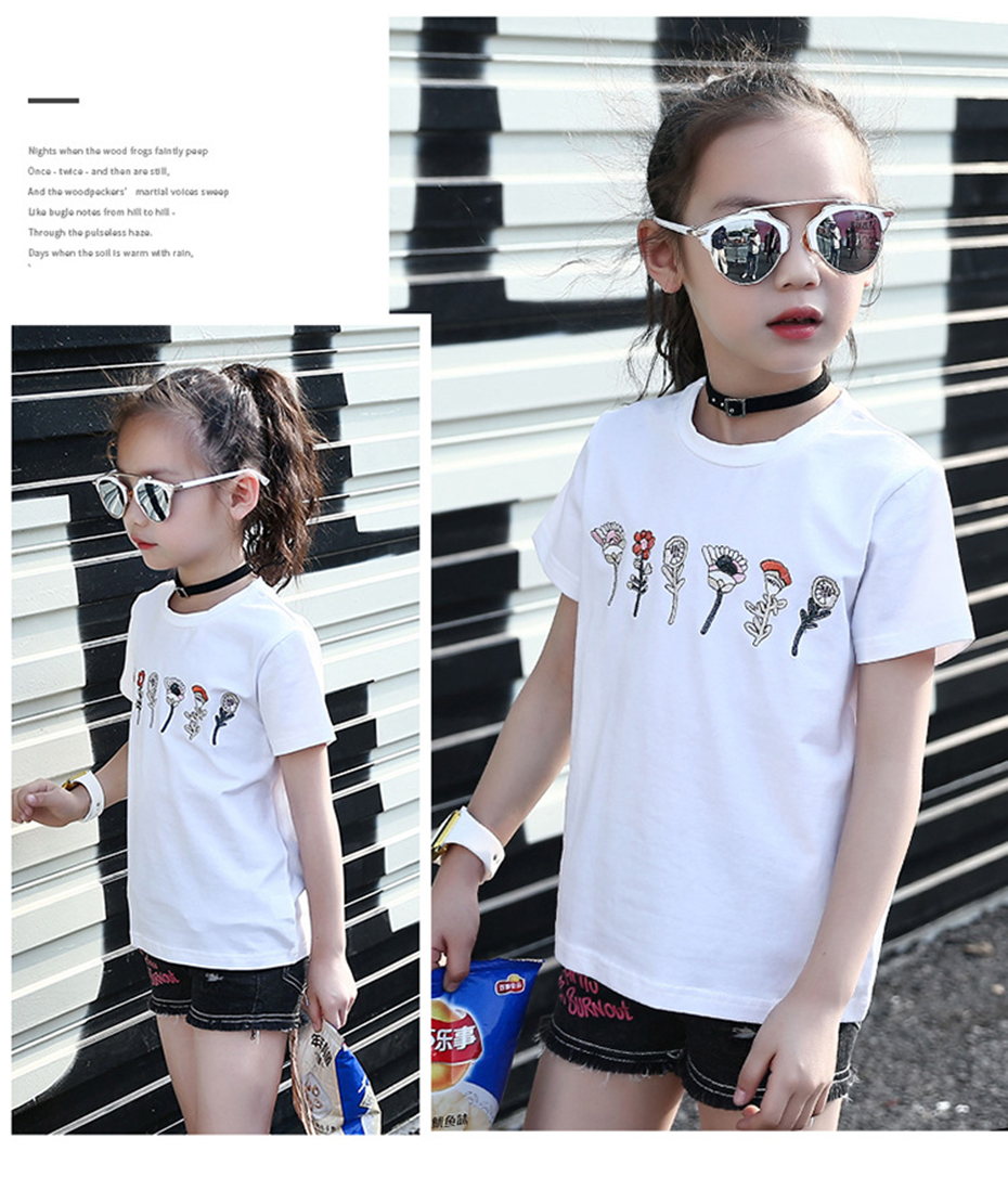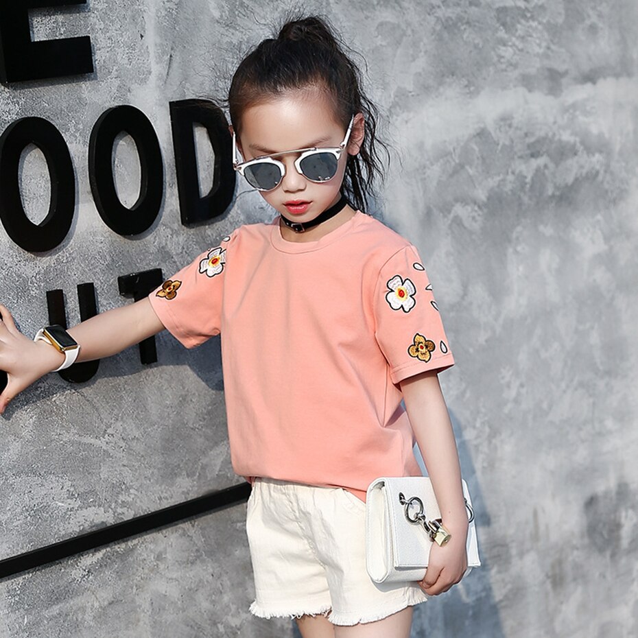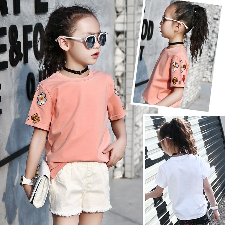 Футболка для девочек с мультяшной вышивкой, футболка для девочек, летние короткие детские топы, футболка, летняя одежда для девочек 6, 8, 10, 12, 13, 14 лет