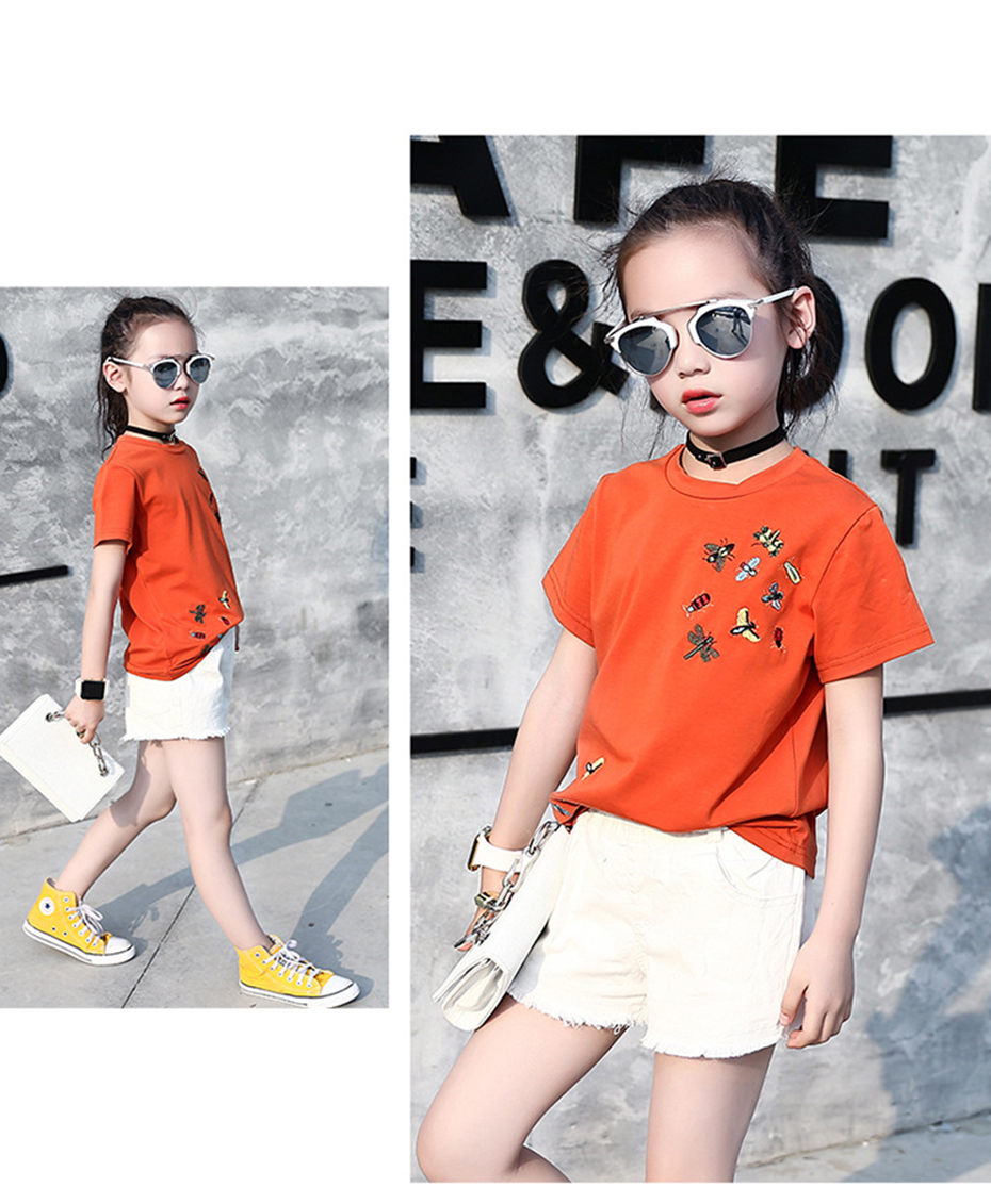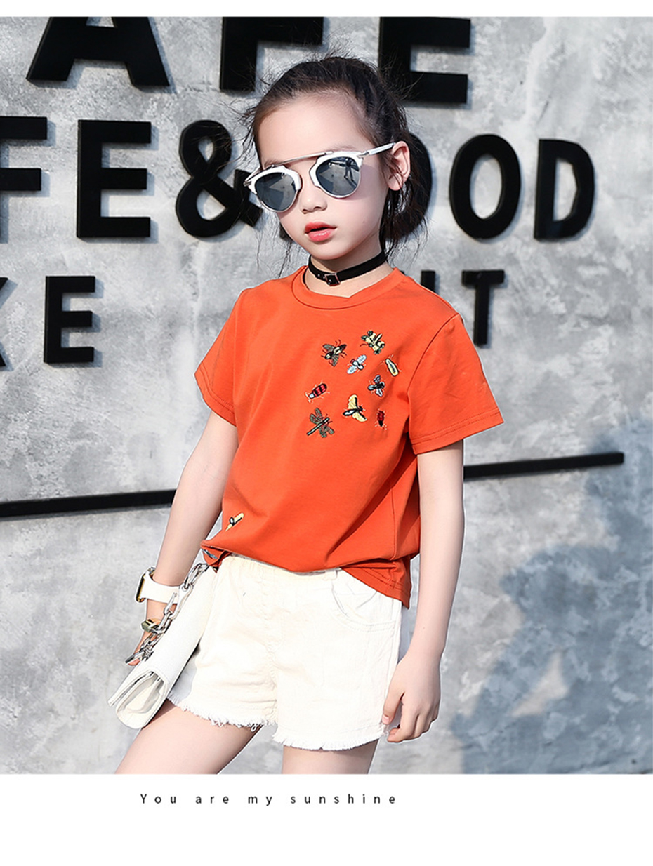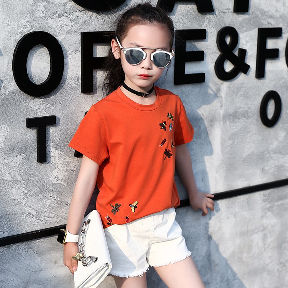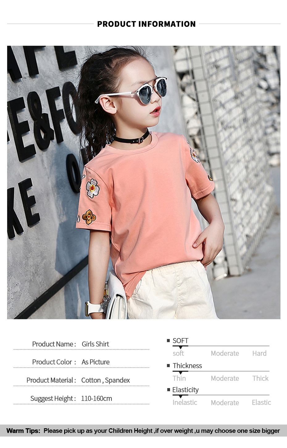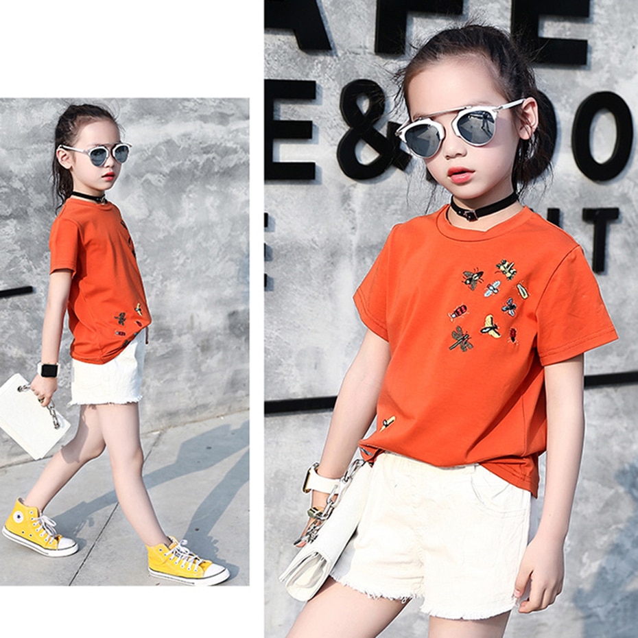 Футболка для девочек с мультяшной вышивкой, футболка для девочек, летние короткие детские топы, футболка, летняя одежда для девочек 6, 8, 10, 12, 13, 14 лет