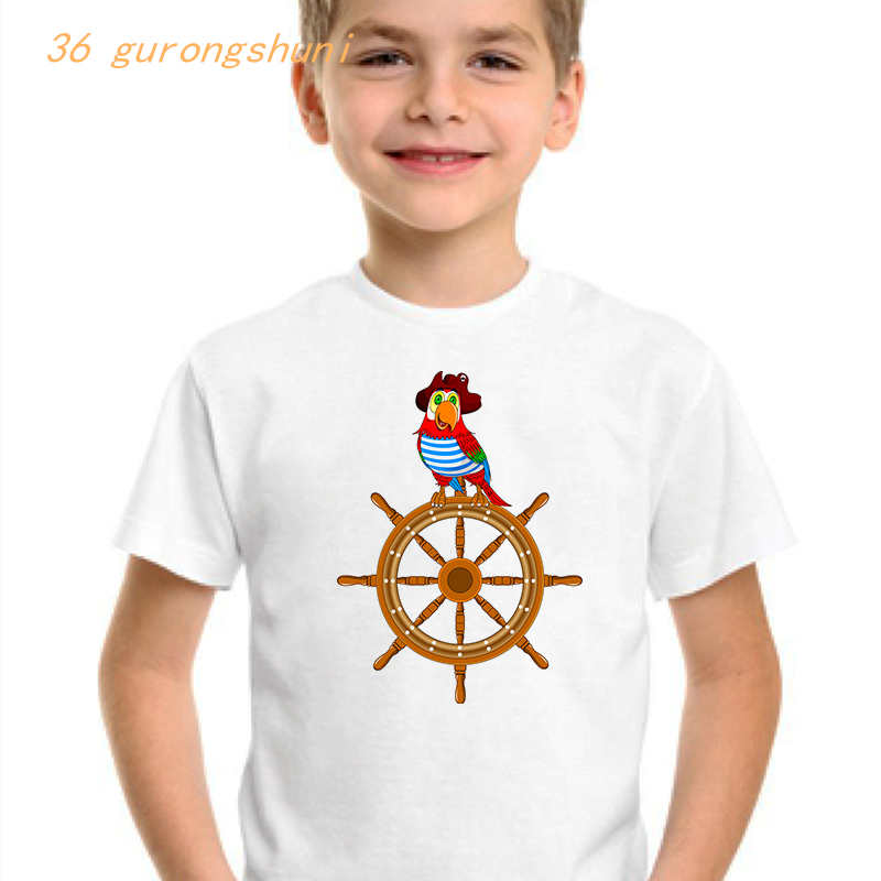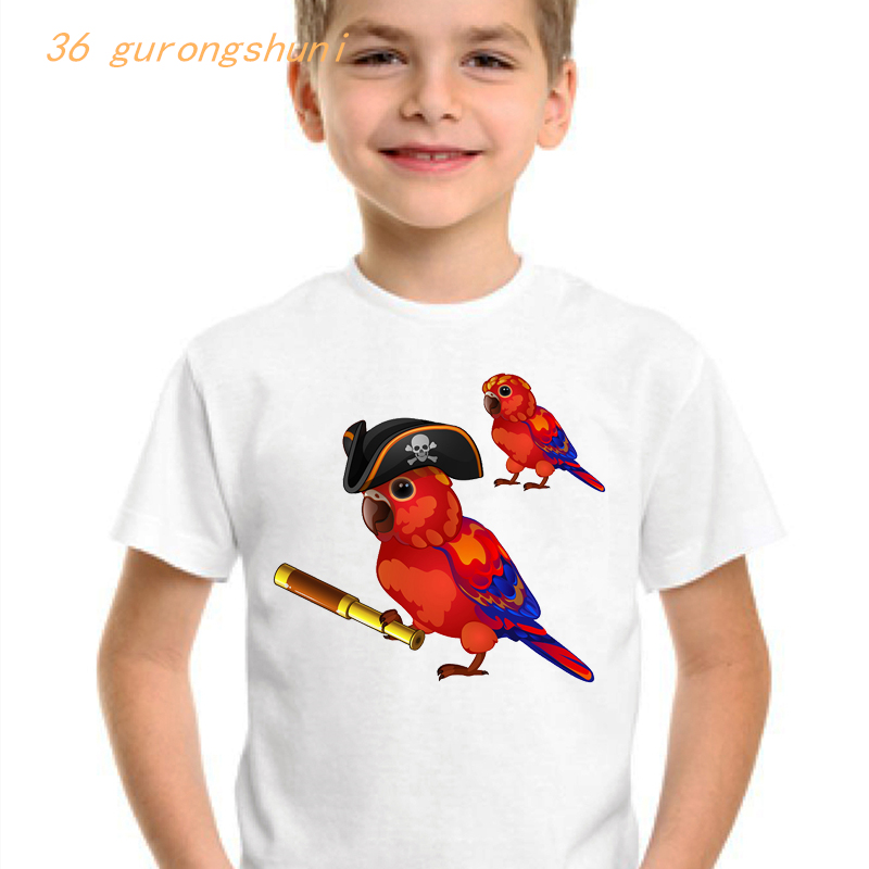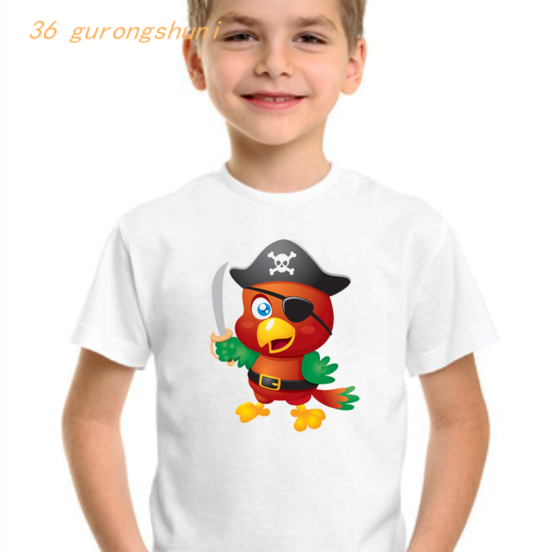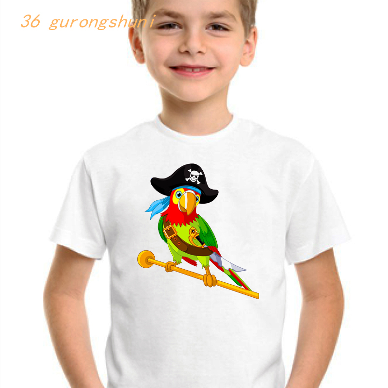 Футболка для девочек с рисунком аниме, попугай, пират, мультфильм, футболка для девочек, детская футболка, футболка, детская одежда, одежда для мальчиков, графические футболки