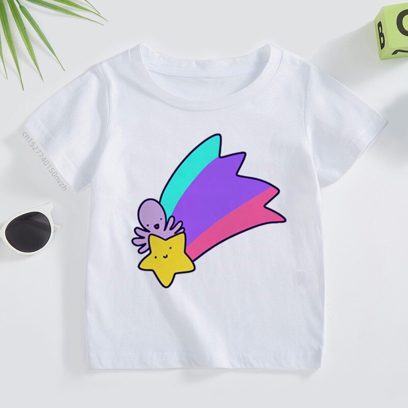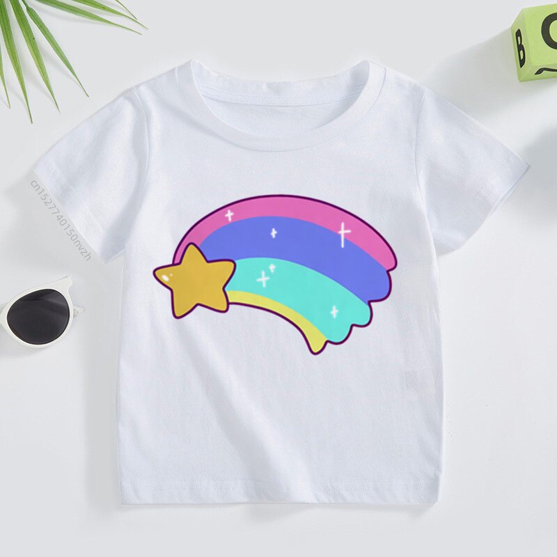 Футболка для мальчиков и девочек с принтом метеорита радужного цвета, Детская Милая футболка, летний модный новый топ с коротким рукавом