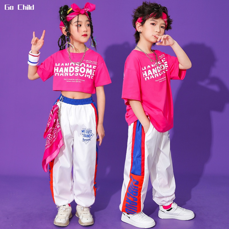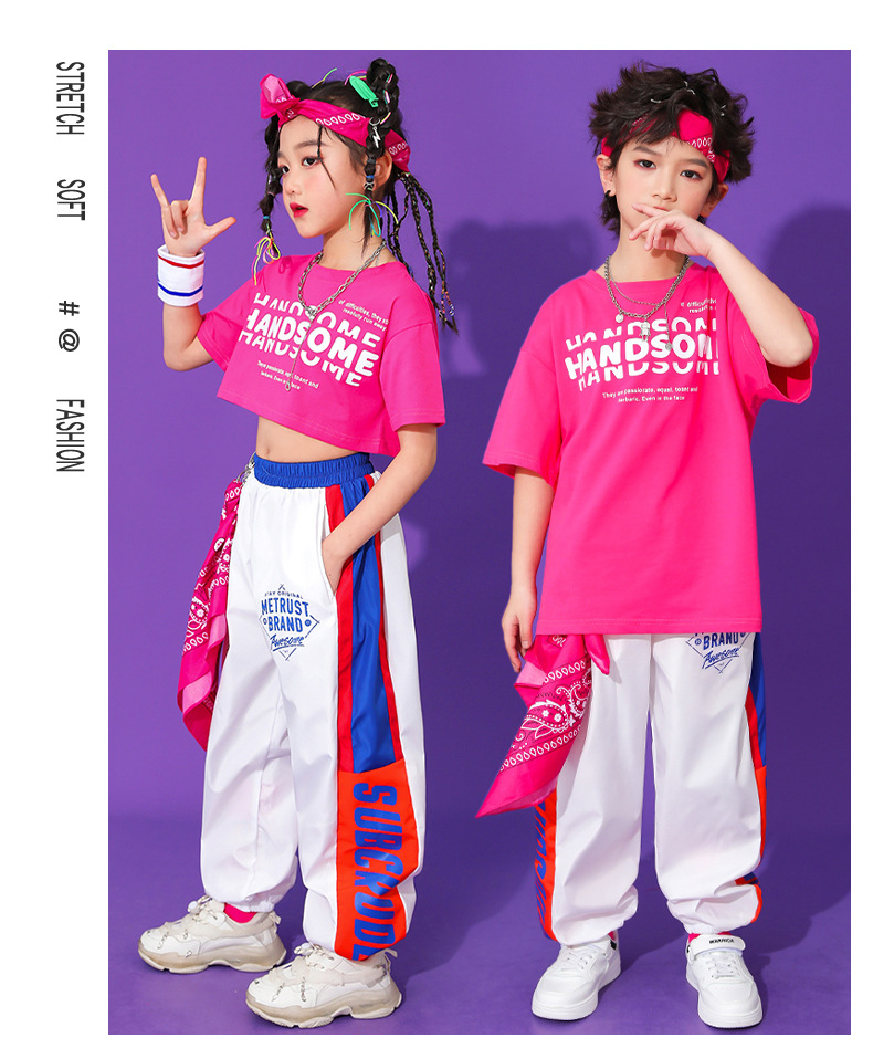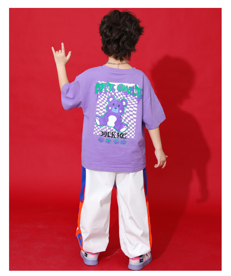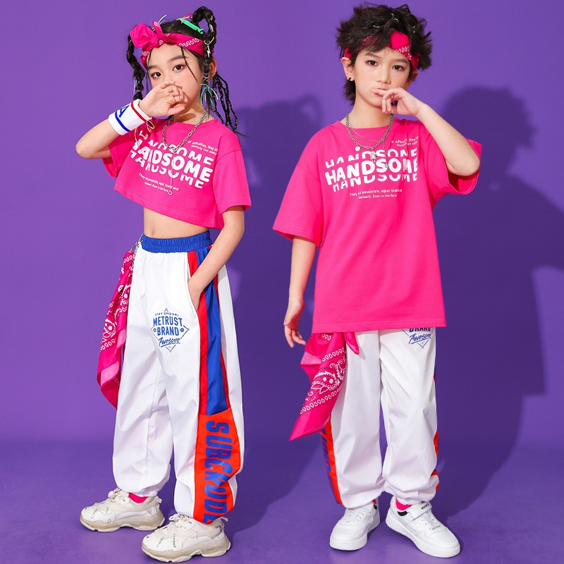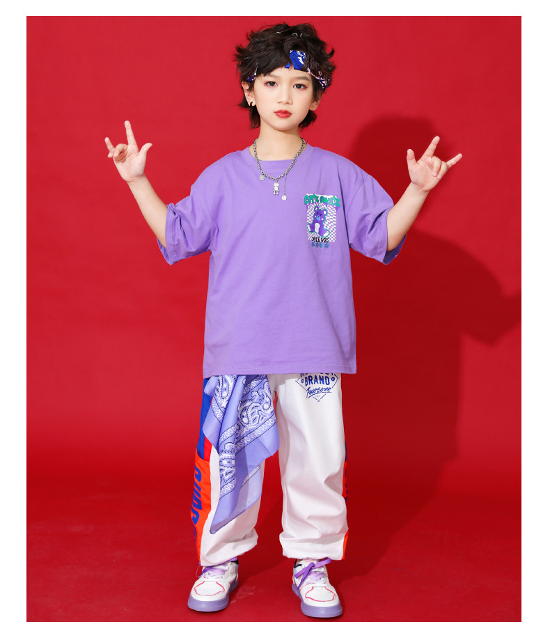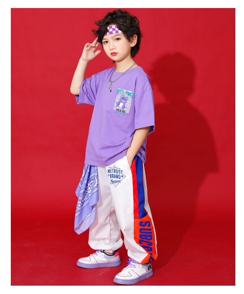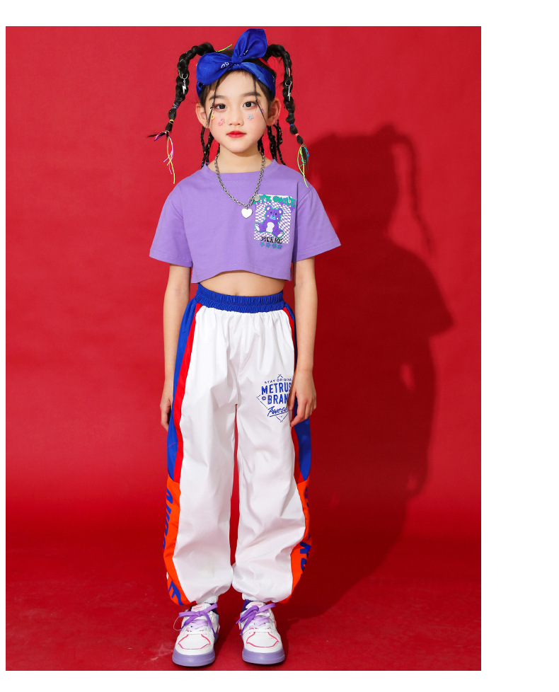 Футболка для мальчиков в стиле хип-хоп, фиолетовые спортивные штаны для уличных танцев, кроп-топ для девочек, джоггеры, Детская уличная одежда, комплект одежды для детей, костюм для джазовой сцены