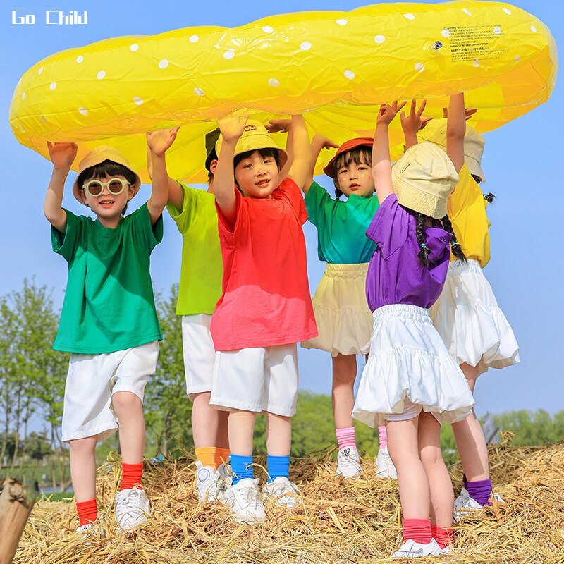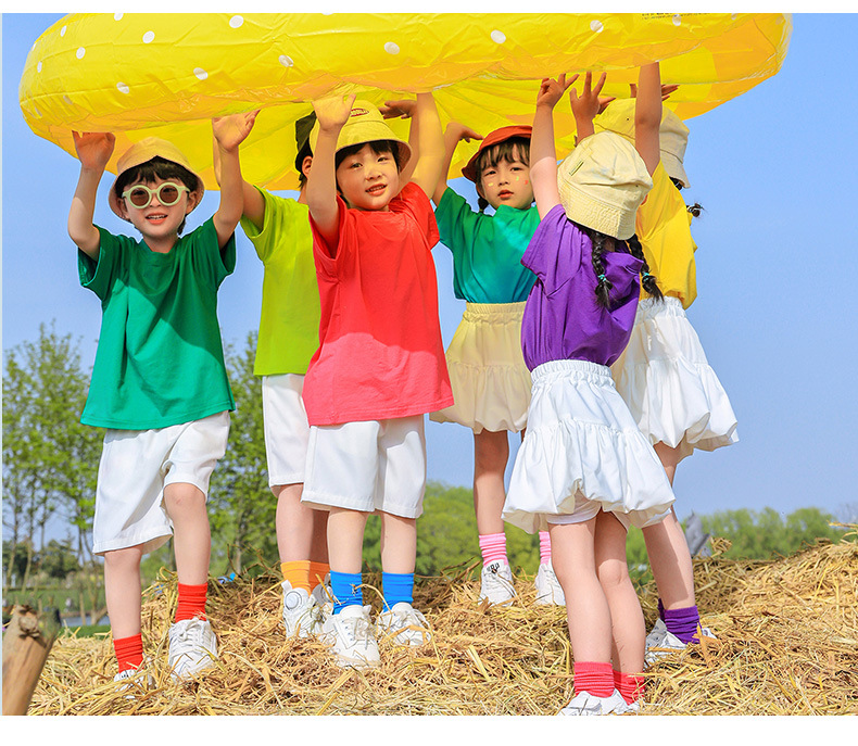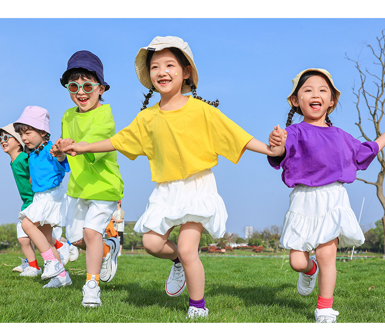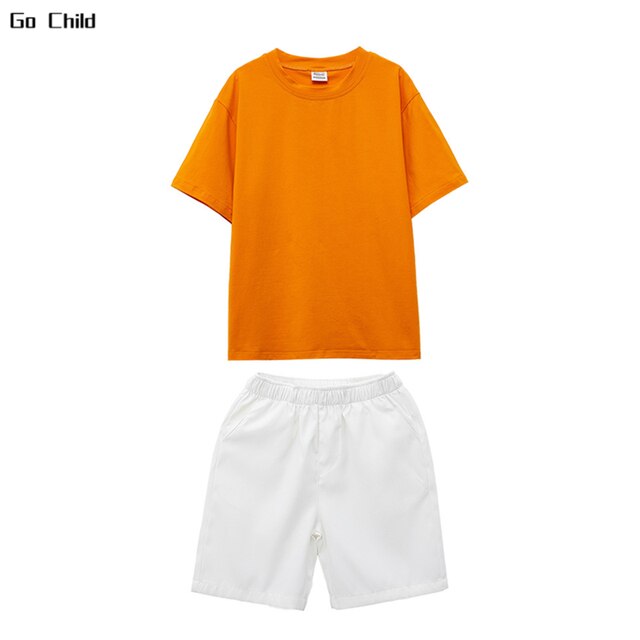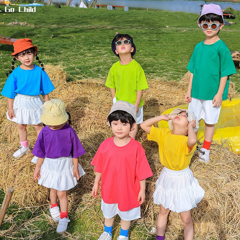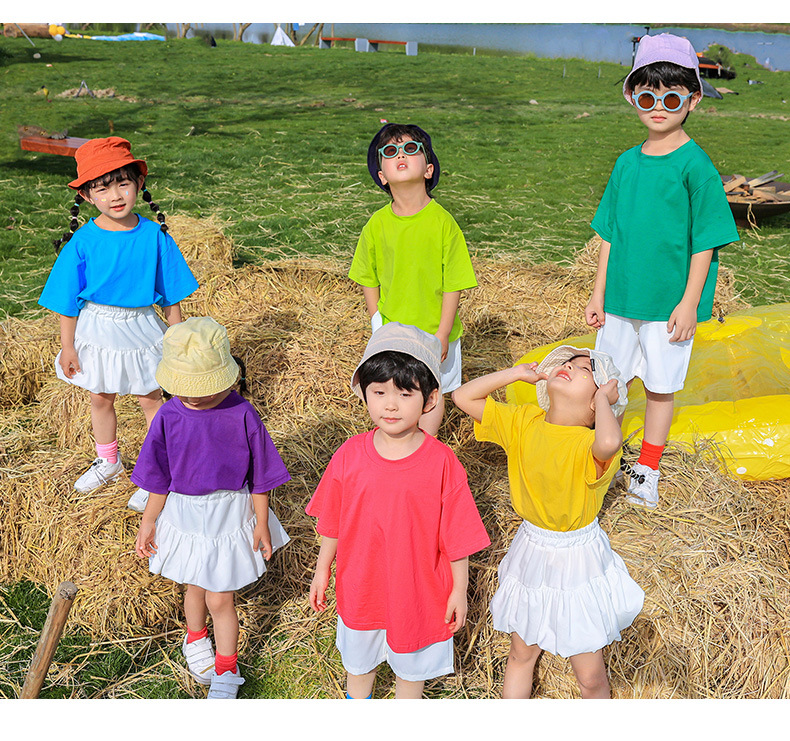 Футболка и шорты для мальчиков и девочек, однотонная цветная футболка и юбка в стиле хип-хоп для уличных танцев, Детский костюм, летняя Милая уличная одежда