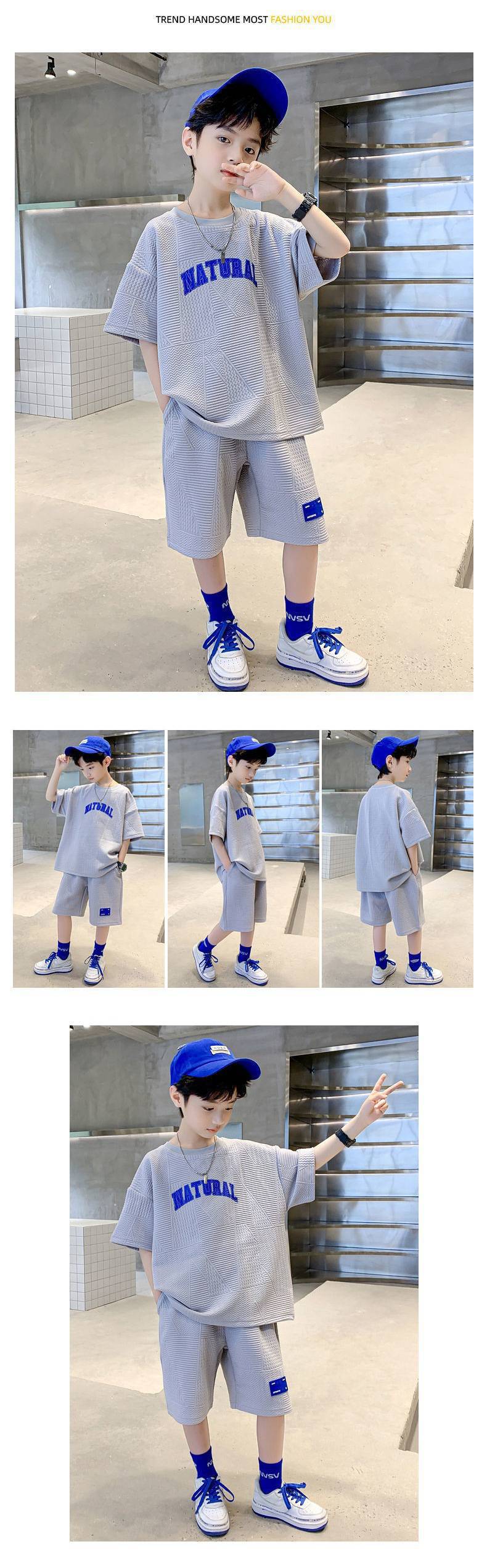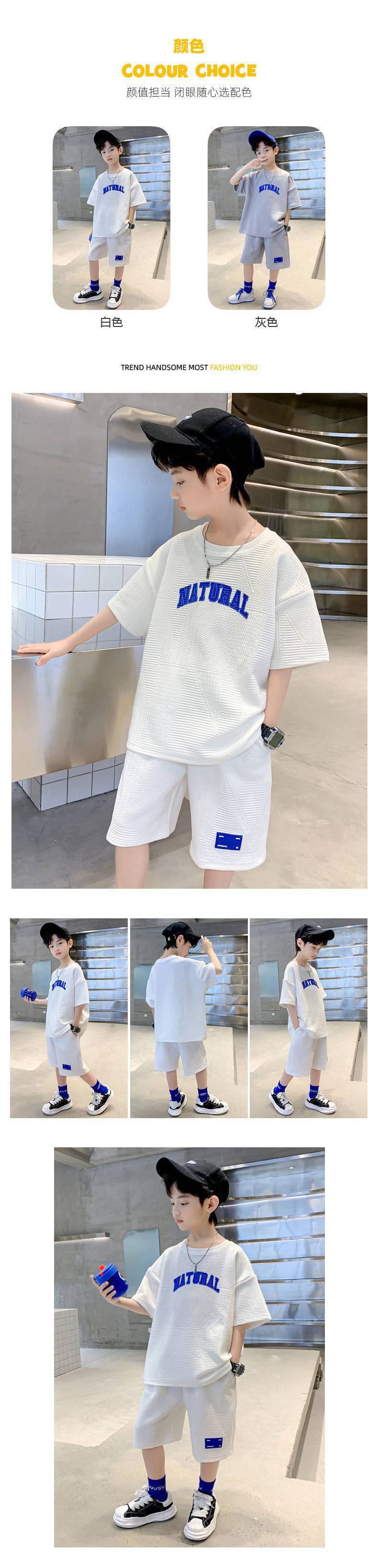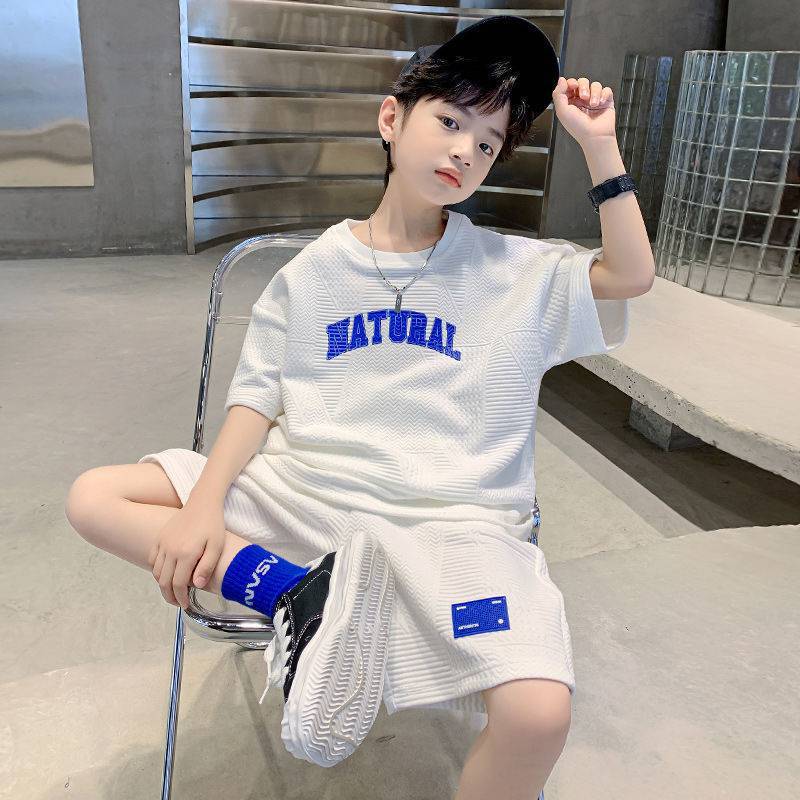Комплект одежды для мальчиков из 2 предметов, летняя детская футболка с короткими рукавами и буквами, шорты, Спортивная повседневная одежда с брюками для мальчиков-подростков