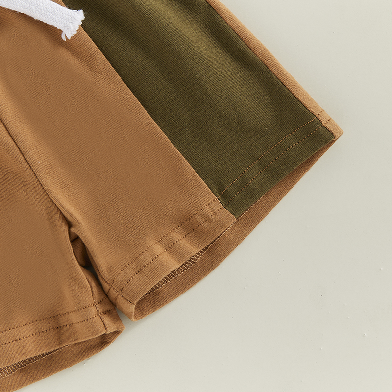 Одежда для маленьких мальчиков Летняя футболка с короткими рукавами Контрастного цвета Топы с рулонными манжетами Шорты Комплект из 2 предметов Комплект детской одежды