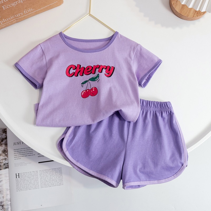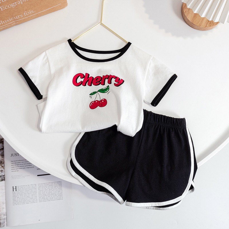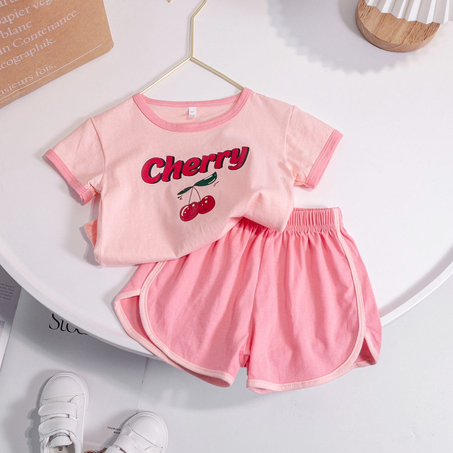 Футболка и шорты с коротким рукавом, х/б, с принтом вишни