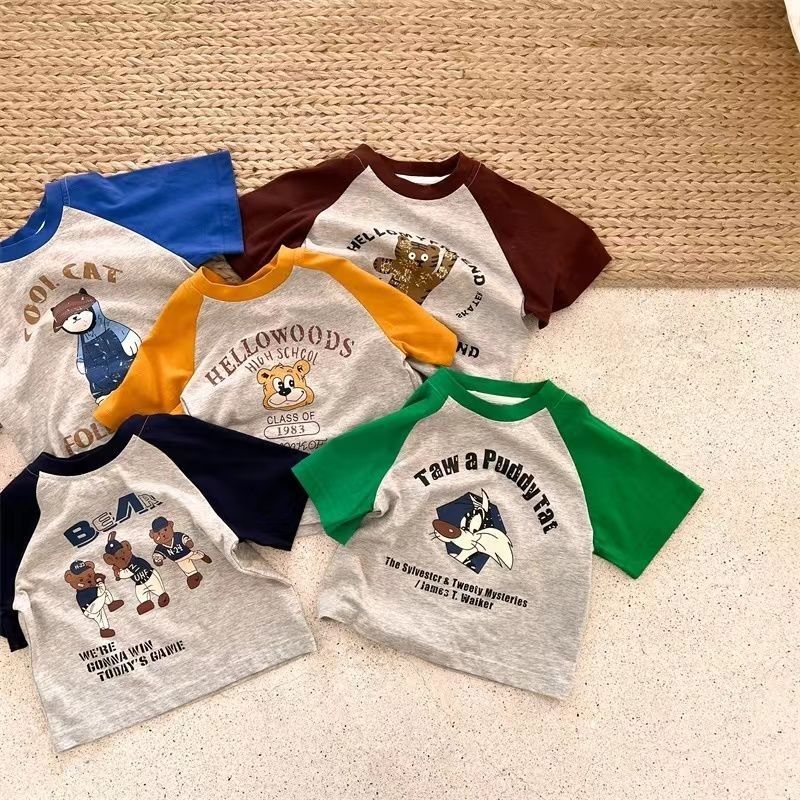 Футболка из чистого хлопка с мультяшным принтом для девочек и детей