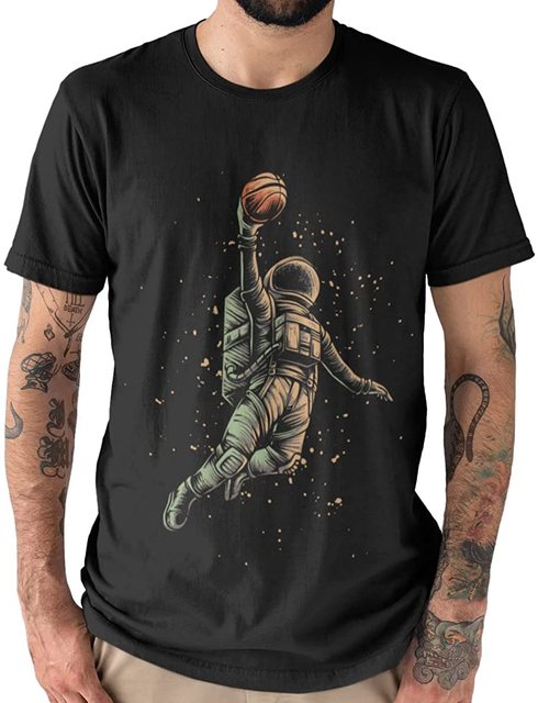 Футболка мужская графическая, хлопок, круглый вырез, короткий рукав, крутой дизайн, рисунок астронавта, баскетбольный рисунок, лето