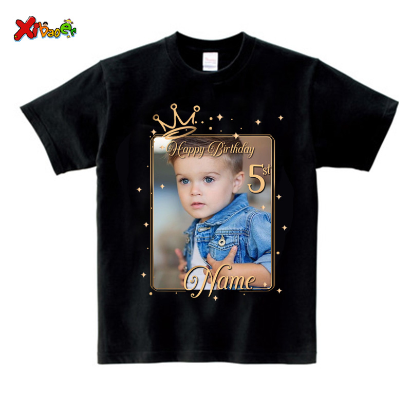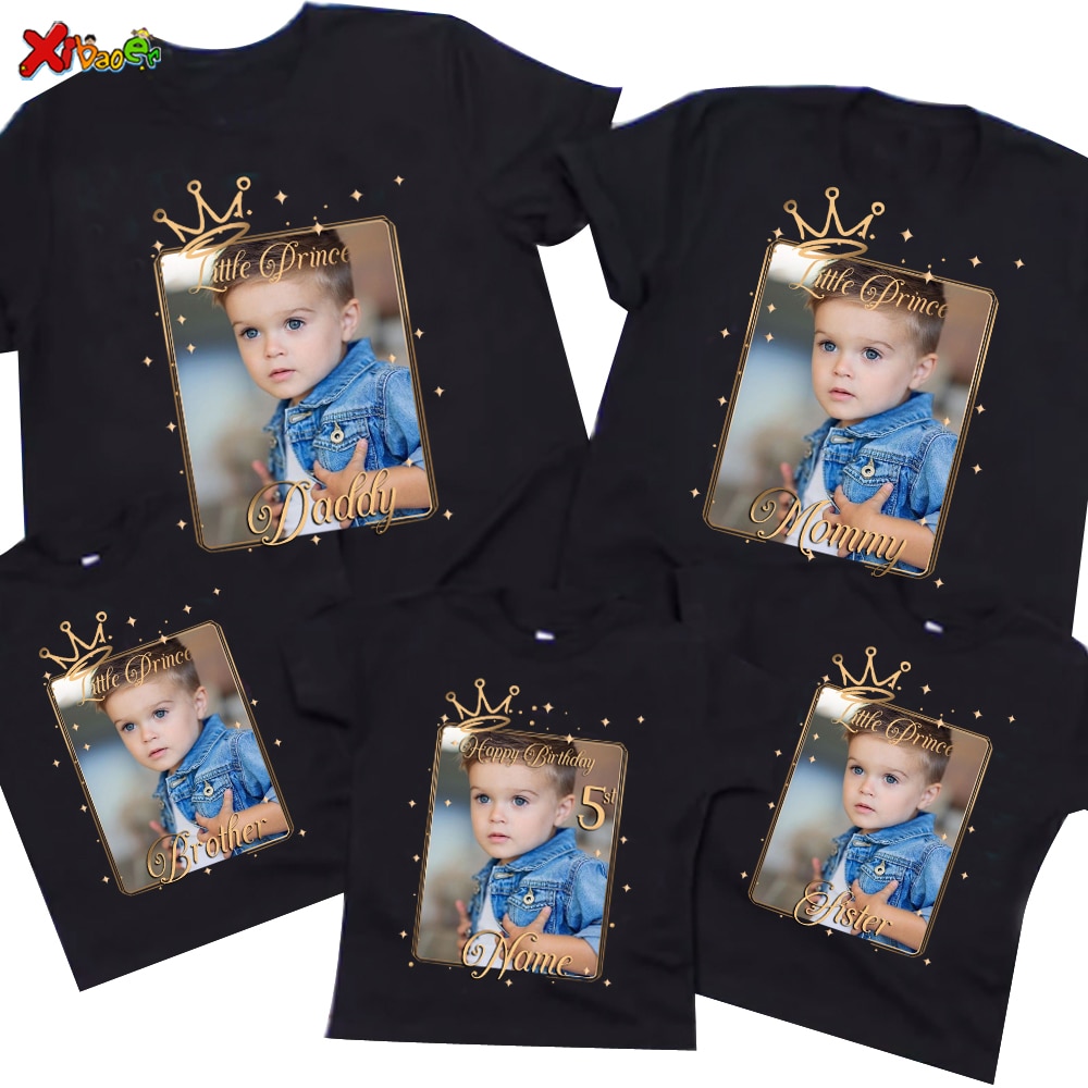 Футболка на день рождения с фотографией семьи на заказ, футболка с фотографией для мальчиков вечерние подходящие футболки с персонализированным именем, семейный образ, одежда на 1-й 10-й Вечерние