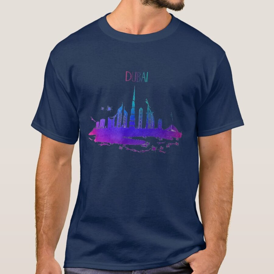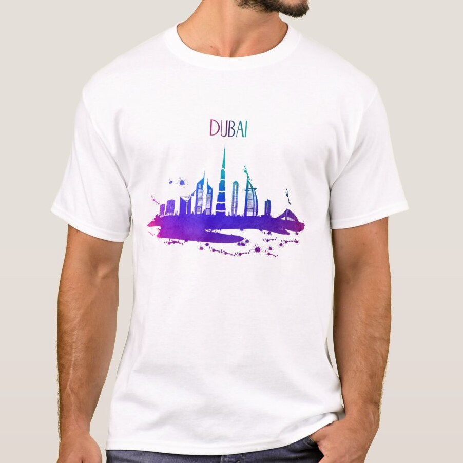 Футболка с акварельным принтом из Дубая Высококачественный хлопок, большие размеры, дышащий Топ, свободная повседневная футболка