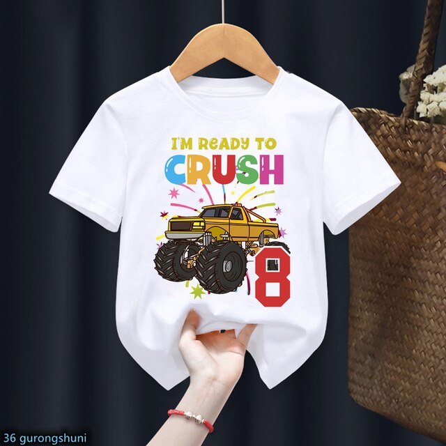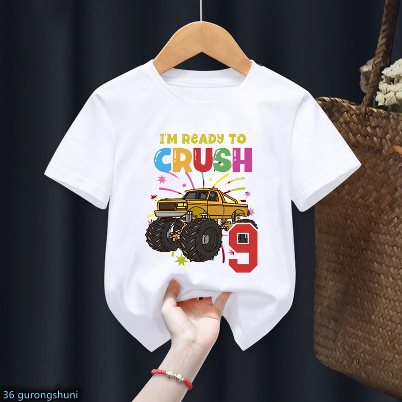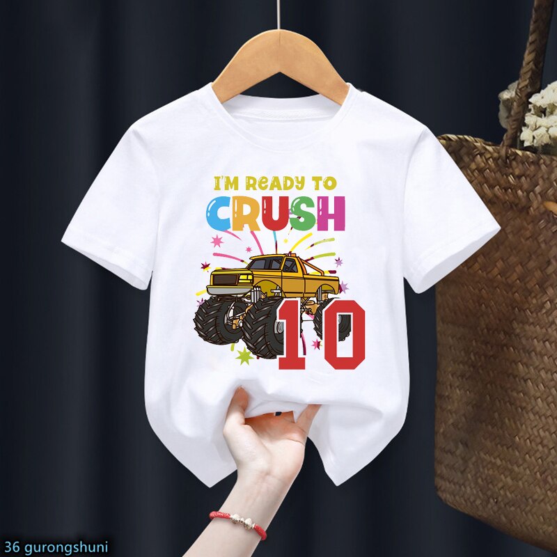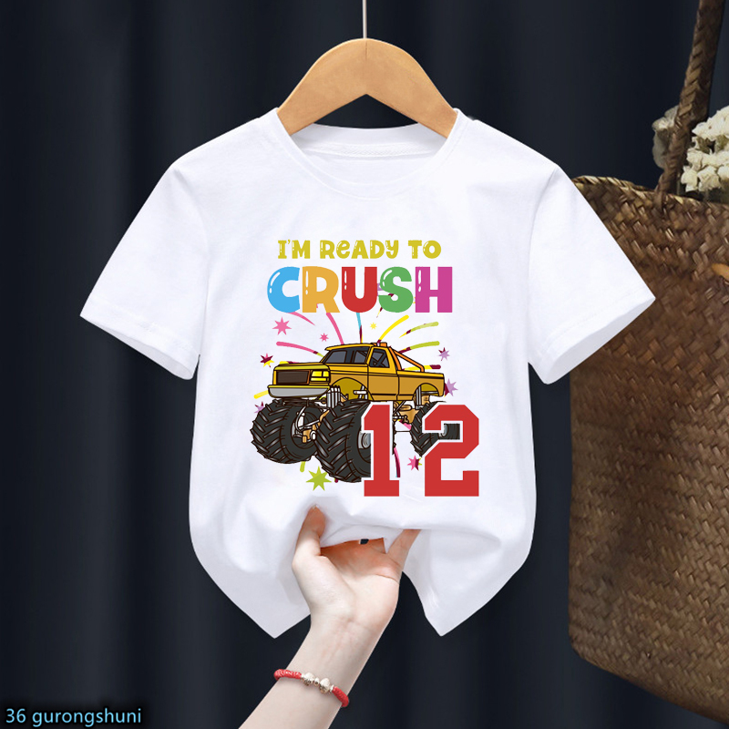 Футболка с изображением желтых грузовиков-мой 2-12-й день рождения, модная футболка для мальчиков, Подарочная одежда для детей, белые топы с коротким рукавом